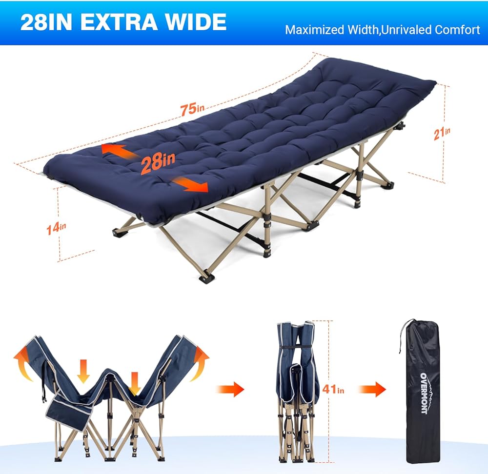 Overmont Folding Camping Cot with Mattress - 550LBS Support - Extra Wide 28in - Heavy Duty Sleeping Cots with Carry Bag - Upgrade 2400D Oxford Cloth Portable for Home, Office, Beach and Camping