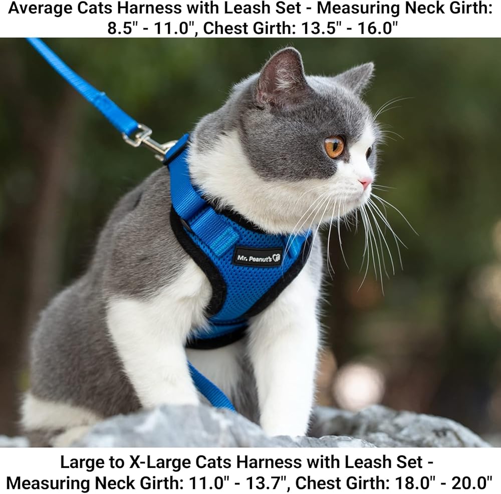 XS Cat Harness with Leash Set - Measuring Neck Girth: 8.5" - 11.0", Chest Girth: 13.5" - 16.0"