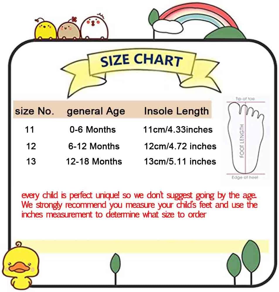 Super Cute ! Great Lightweight ! Easy Off or On ! Canvas Lace - up Soft and Non - slip Sole Fashion , Casul and Classic Spring , Summer , Autumn ,Winter Style 1 : Cotton Lining - Breathable,Suitable for Spring , Summer , Autumn. Style 2 : Plush Lining - Comfy and Warm for Winter. Style 3 : Rubber Sole - Has the advantages of dood abrasion resistance. 3 - 6 Months Infant ........... Size : 11 cm ......... Size : 4 3/8 Inch 6 - 12 Months Infant ......... Size : 12 cm ......... Size : 4 3/4 Inch 12 - 18 Months Toddler ..... Size : 13 cm ......... Size : 5 1/8 Inch 1 Inche=2.54 CM Please measure your baby's foot length to choose the right size for your baby!