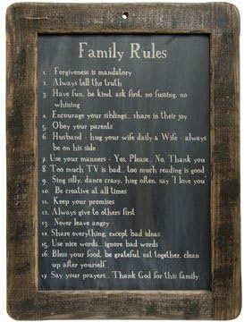 يعد اللوح الأسود من قواعد الأسرة لمسة مدروسة لغرفة المعيشة أو غرفة المعيشة أو المطبخ 17 تذكيرًا حميمًا وملهمًا معروضًا على لوح أسود مهذبًا بإطار خشبي ملطخ. 30.48 سم ارتفاع × 20.32 سم عرض، مع فتحة مسبقة الحفر في الأعلى للتعليق.