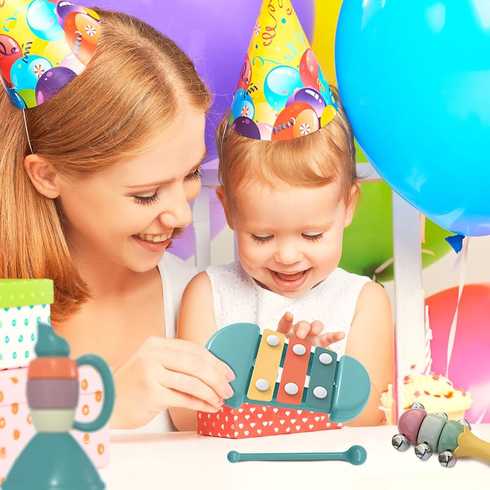 Montessori Musical Instruments for Babies and Toddlers Kids Musical Toy Set with Rattle Maracas,Trumpet, Xylophone and Handheld Drum for Preschool Boys and Girls Christmas Birthday Gift