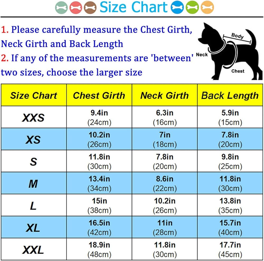 • ✅【Reference Size Chart】Please carefully measure the Chest Girth, Neck Girth and Back Length. Not too tight and leave 2-3 finger's space for best fit & comfort. If size btween 2 sizes, please choose the large size dog shirt