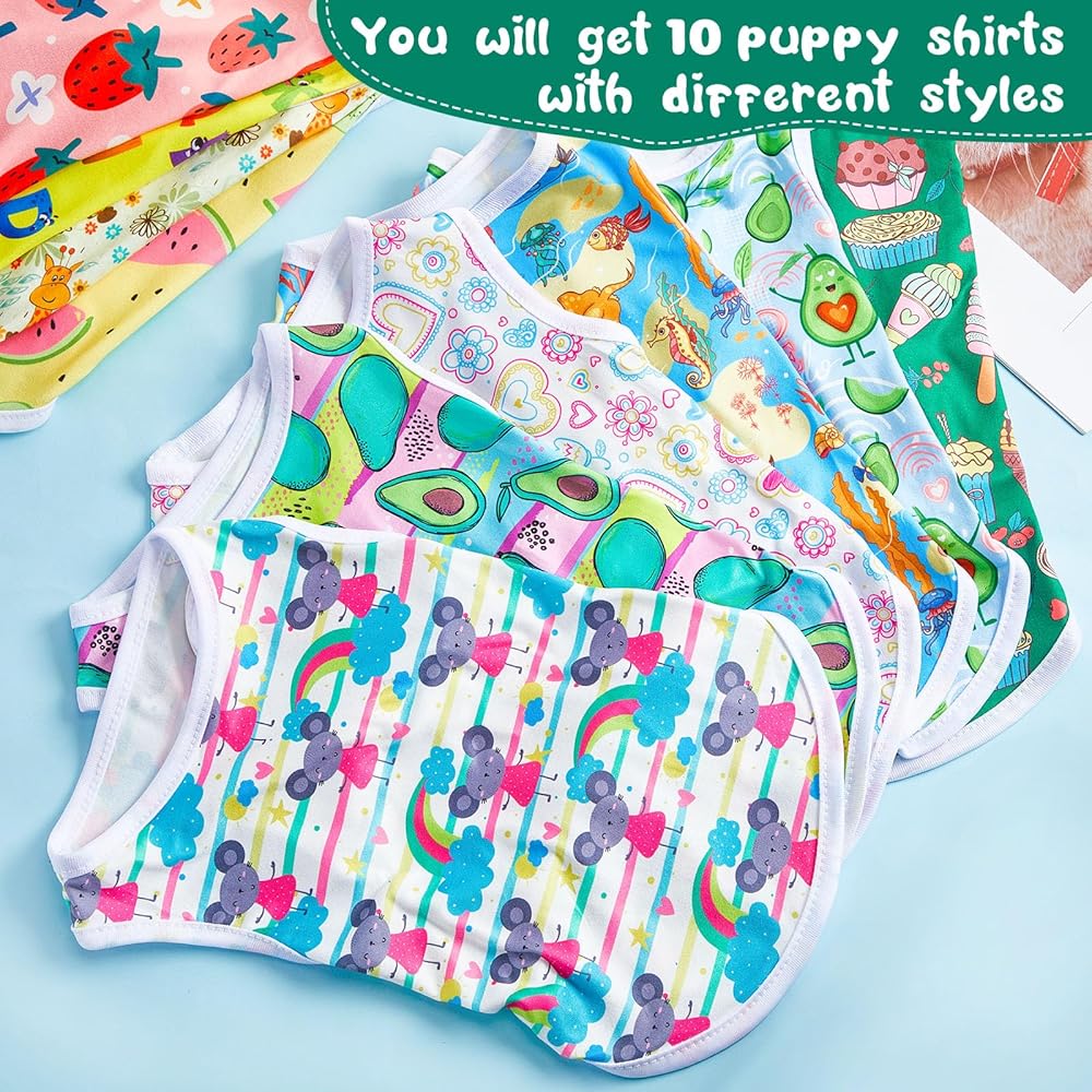 Sufficient for Daily Wearing and Replacing: there will be 10 pieces doggie t-shirts for small dogs printed with different patterns, and you can choose the pattern you like to match the outfit of your pet; Enough quantity of pet shirts will support daily wearing need and replacing need of your pet, also will allow you to send as presents to friends who also have kept pets at home