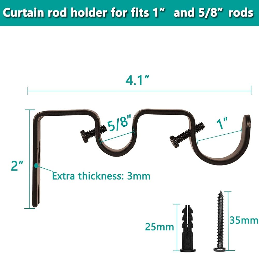 Bracket hooks adjust to accommodate a maximum rod diameter of 1 inch, you can adjust and twist screw to fix rod firmly.