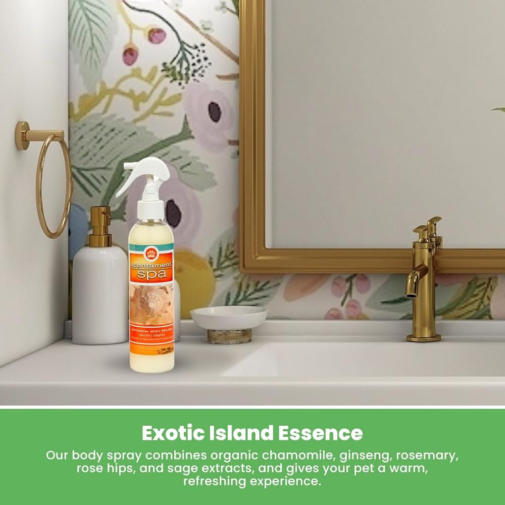Make every day a good hair day for your pet with Best Shot's Scentament Spa Body Splash. Our ready-to-use body spray is infused with the irresistible Lemon Vanilla botanical essence, along with organic chamomile, ginseng, rosemary, rose hips, and sage extracts for an aromatic fragrance in every splash. Loaded with vitamins A, D, and E, silk protein, and more, Best Shot's body spray effectively detangles, deodorizes, reduces brushing and combing time, and eliminates static from your furball's coat. Our alcohol-free and fabric-safe skincare product is cruelty-free and safe for the environment. The regular application of this hypoallergenic aromatic body spray helps reduce malodor on the pet's body between baths. The gentle detangler spray is free from harsh and harmful chemicals and nourishes your pet's coat. The Best Shot Scentament Spa Botanical Body Splash - Lemon Vanilla essence is available in an 8-ounce bottle and is safe for any dog, cat, puppy, and kitten (over 12 weeks old).