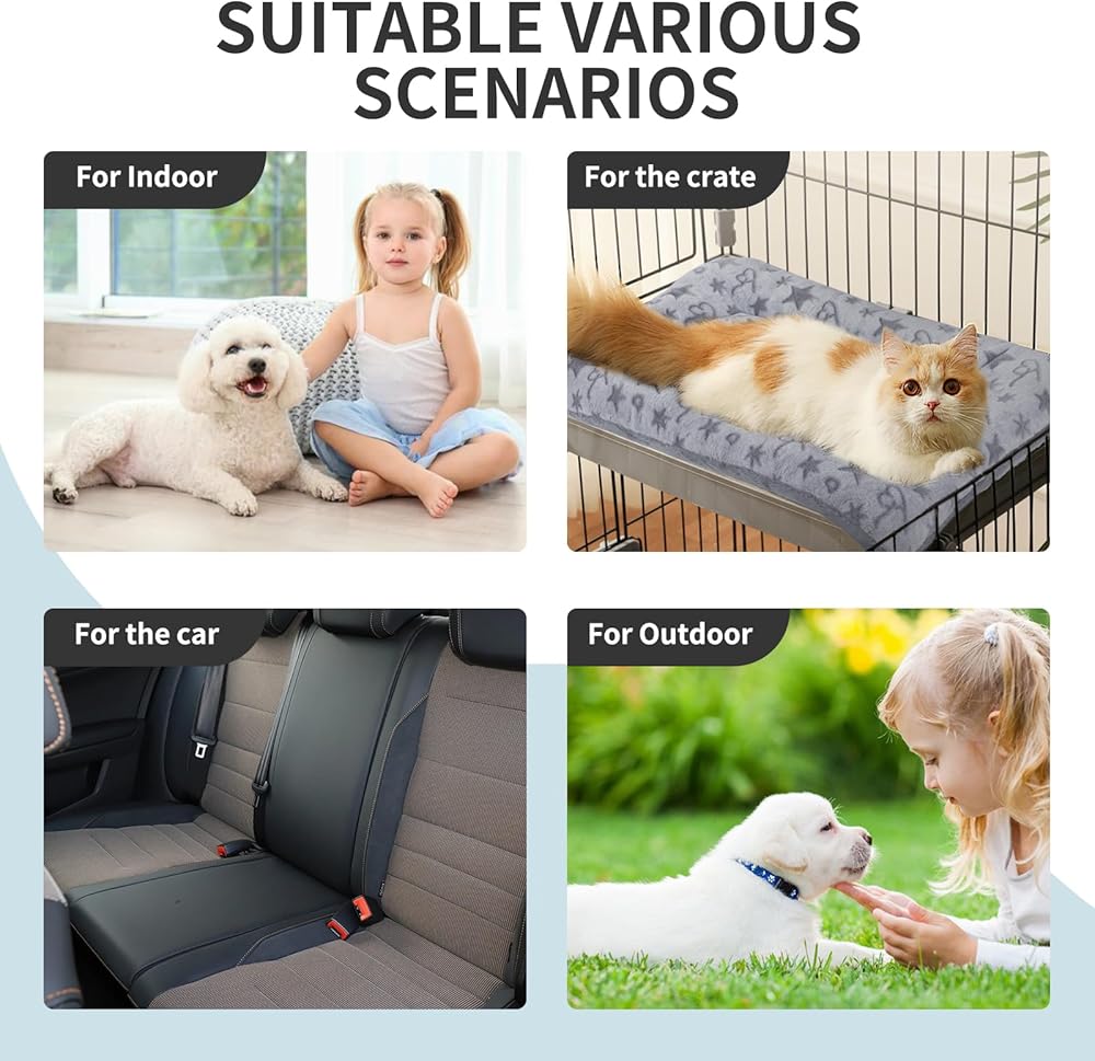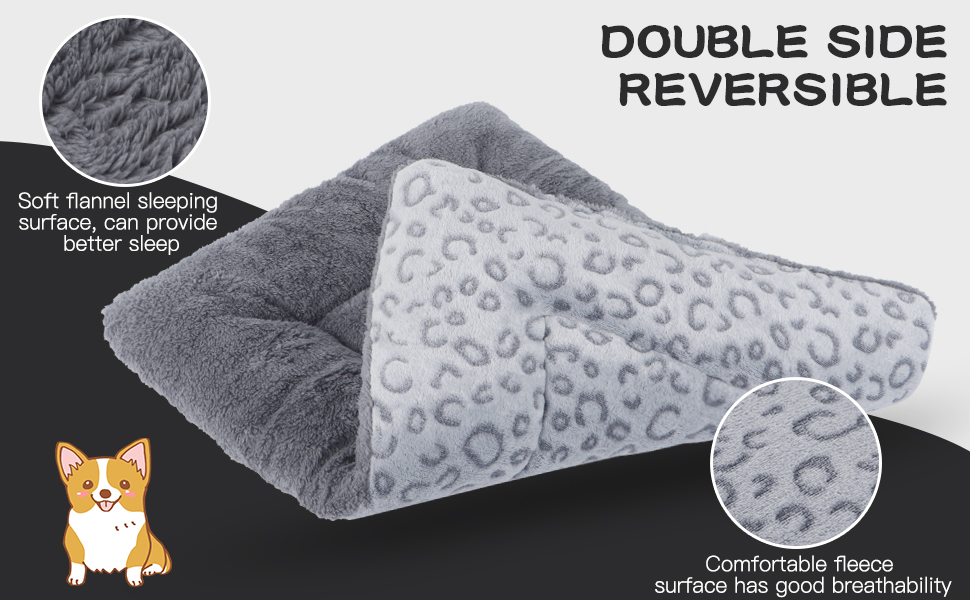 【Soft and Comfortable】 The reversible dog bed mat is very soft and comfortable. The softness of the fabric will definitely leave a deep impression on you. This is a comfortable texture that your cat and dog will love. This dog bed mat can provide a very comfortable resting and sleeping environment for your pet.
