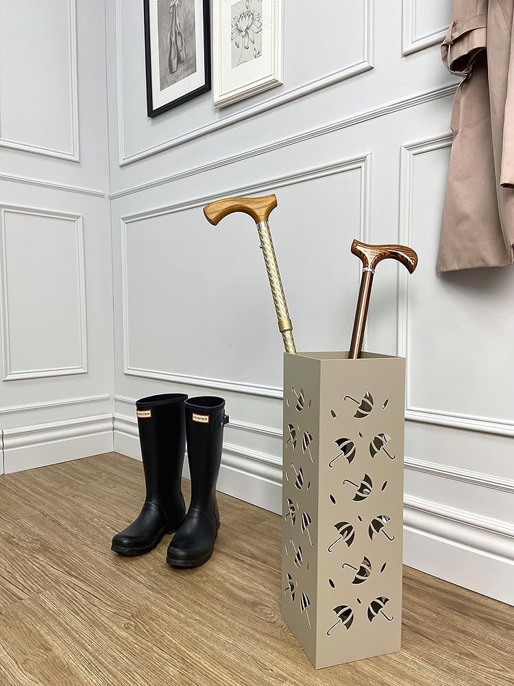 Versatile Umbrella Storage: Designed to accommodate classic umbrellas, stylish parasols, bubble umbrellas, and even walking sticks, making it a versatile addition to your entryway or foyer.