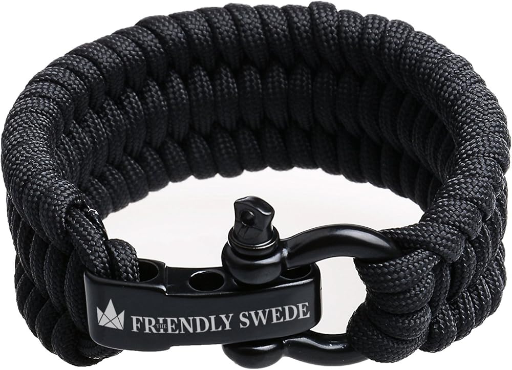 The Friendly Swede Trilobite Paracord Bracelet for Men — Extra Thick Survival Bracelet with Stainless Steel Black Bow Shackle; Polyester Paracord with Adjustable Size & Spare Pin