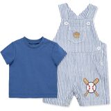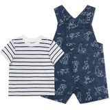 Your little skipper will love sailing the high seas in this baby boys' comfortable shortall and polo shirt set designed in a striking blue sailboat theme.