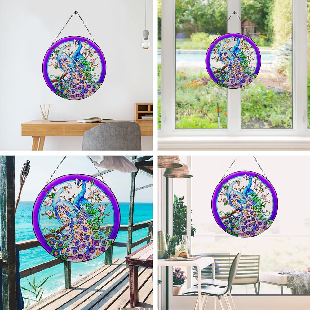 Perfect Gifts: The peacock stained glass window hangings will suit indoors and outdoors. Vibrant colors and innovative design absolutely a beautiful addition to any window. It is a lovely gift for your friends, family, loved ones, etc.
