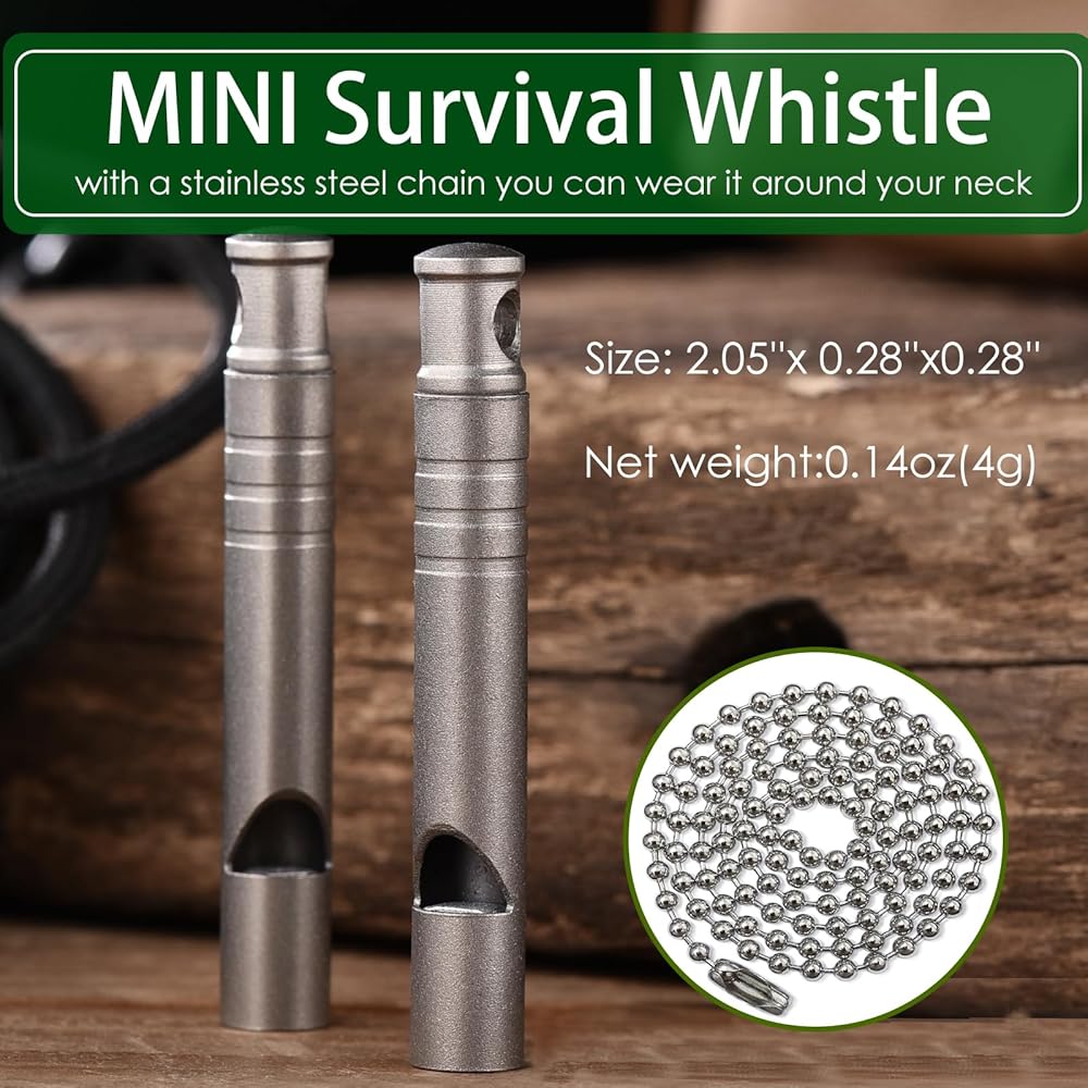What You Get - A titanium mini whistle + A 27.56 ''stainless steel bead chain. Great gift for your friends or family!