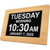 Compact size: The large digital clock for seniors comes with a unique 8 inch high resolution display. The digital alarm clock clearly spells out the time, period of the day, full day of the week, month & date in large, clear letters with no confusing abbreviations.