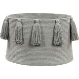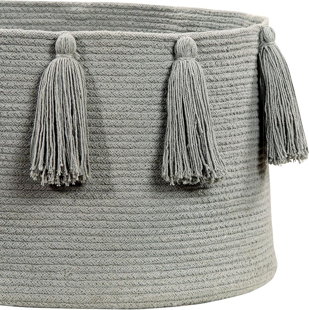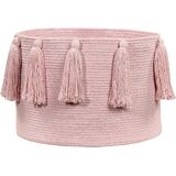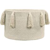The tassels cotton basket is the solution for storing all manner of things like toys, books, magazines, blankets, plants, etc. This 100Percent cotton basket is Braided, lending it its circular shape, and hand-made by our craftspeople; it is the perfect choice for any setting in need of extra storage, including children's bedrooms, living rooms, dining rooms, entrance halls, patios and gardens. The tassels lend a casual and cheerful touch to this unfussy and fun design. Available in 11 single-tone colors, ranging from fresh and vibrant colors to subtle and vintage. This BSK-TAS-NAT combines with all our rugs, cushions, blankets and wall hangings.