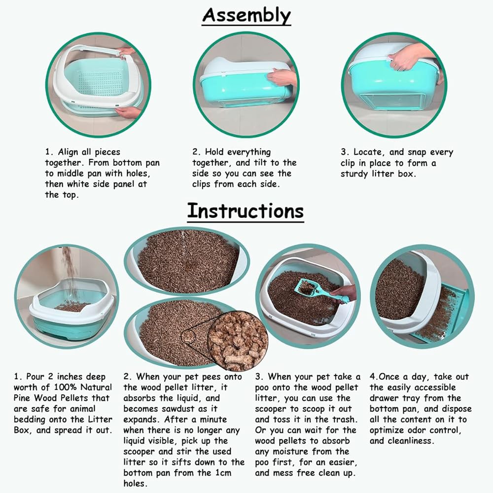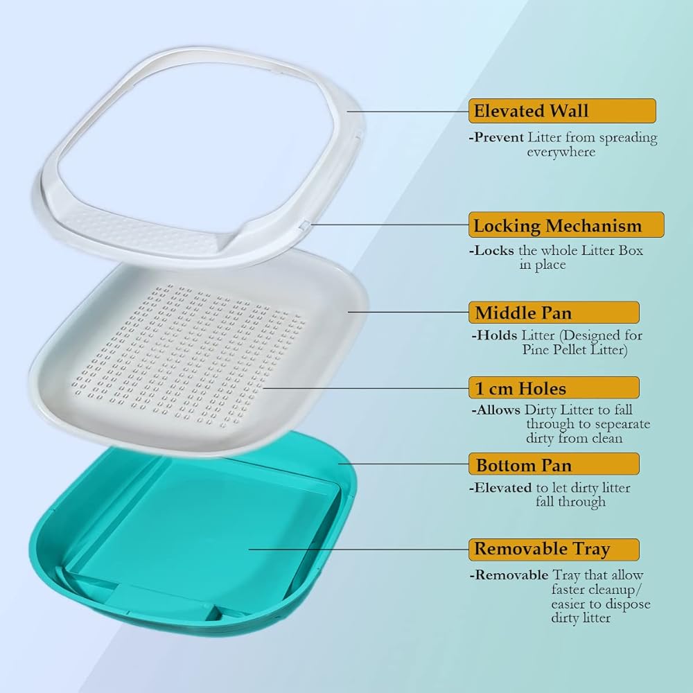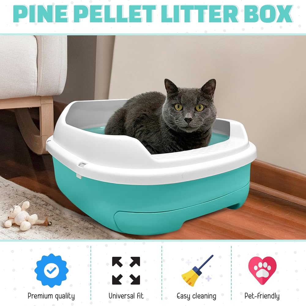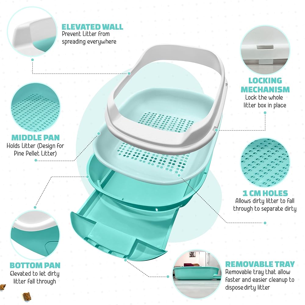 Tom & Sora Creations Pine Pellet Litter Box, Sifting Litter Box - Cat, Kitten, Rabbit and Other Small Animals, Drawer System, Odor Control, Easy to Clean (Turquoise)