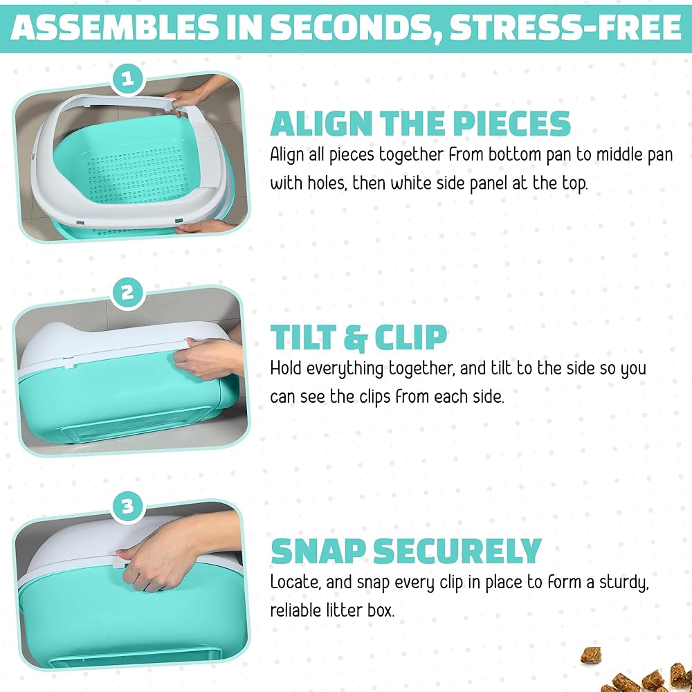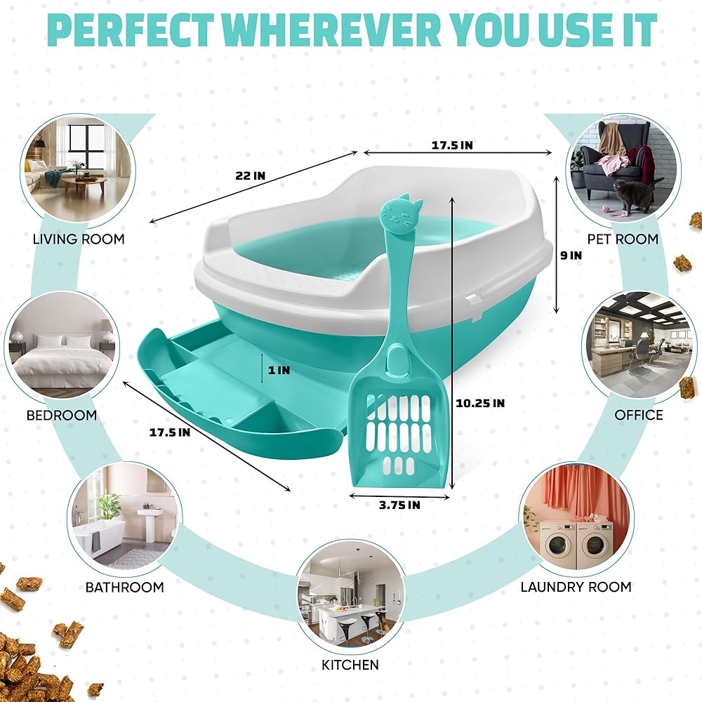PREMIUM QUALITY: Premium construction, and super sturdy open concept litter box system that give your pet the freedom to do their business feeling safe and comfortable.