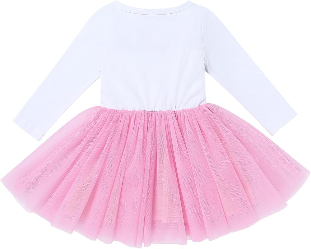 CUTE DESIGN --- Cute Baby girl birthday party long sleeve mesh tutu tulle dress. Features long sleeve, o-neck white top, embellished with special glitter letters “It's My 1st / 2nd / 3rd Birthday”, "My 1st / 2nd / 3rd Birthday" printed at front, a lovely shiny sequin bowknot decor at the waist. A-line shape tutu skirt, solid colour or with classis polka dots pattern printed, soft lining inside, comfortable to wear