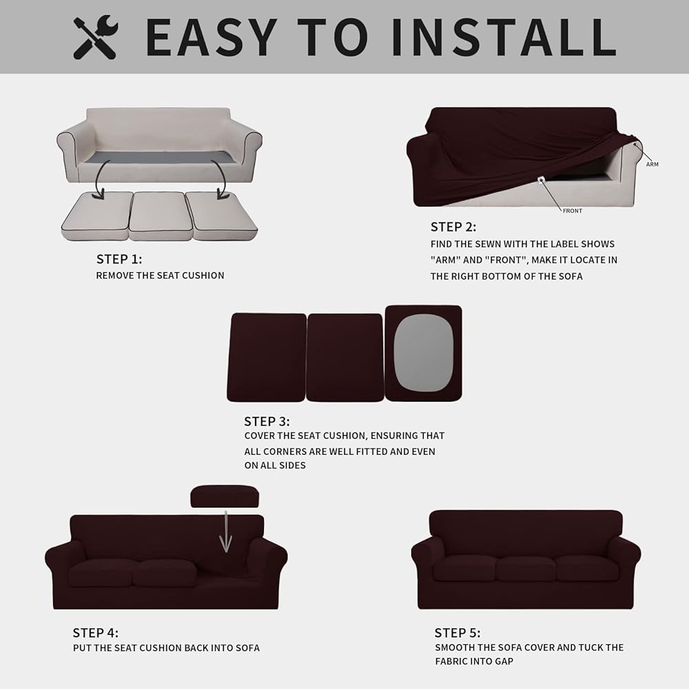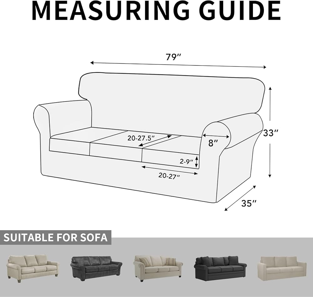 All-round Protection: Composed of 1 main sofa slipcover and 3 pieces cushion slipcovers. This separate seat cushions design makes the sofa cover fit perfect. Protect your couch from daily wear and tear, spills and stains, it makes your sofa look new and extends the service life of furniture.