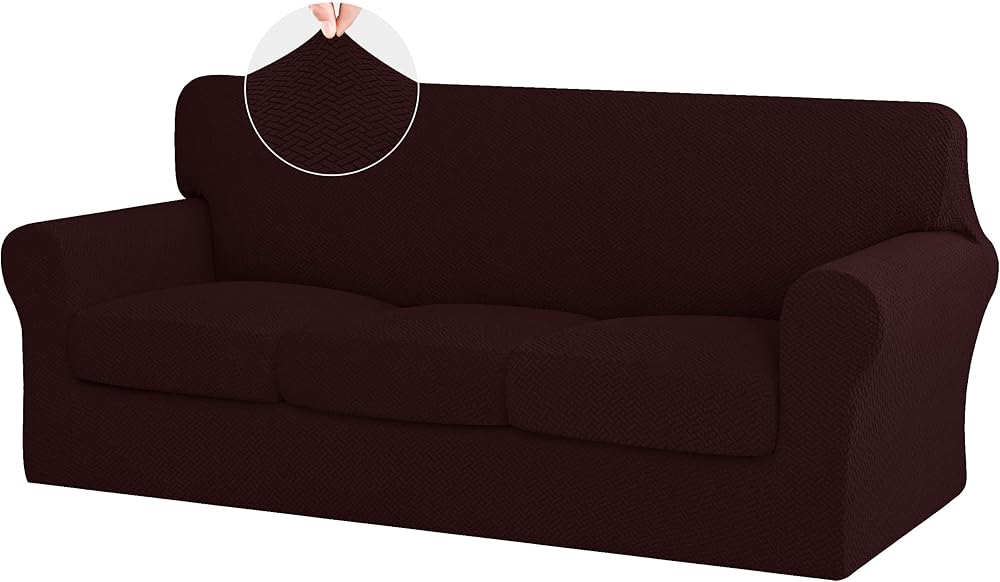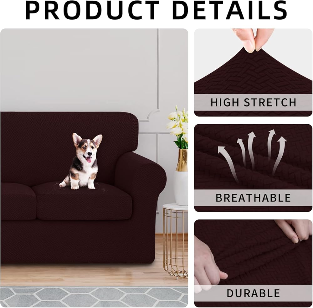 Thick Stretch Fabric: 15% spandex + 85% polyester. Thicken jacquard fabric with high quality stretch, very soft and breathable. Great fit for separate cushion couch sofa.