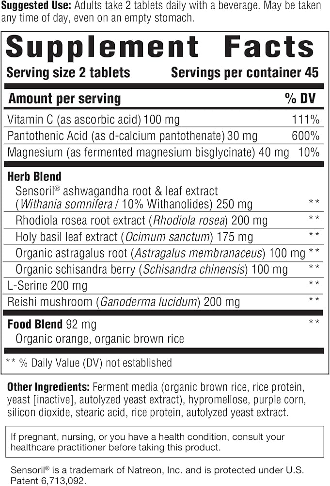 Stress And Fatigue Support: Nourishes depleted adrenals to promote a healthy stress response; Sensoril ashwagandha promotes positive and balanced mindset