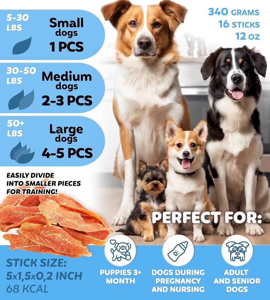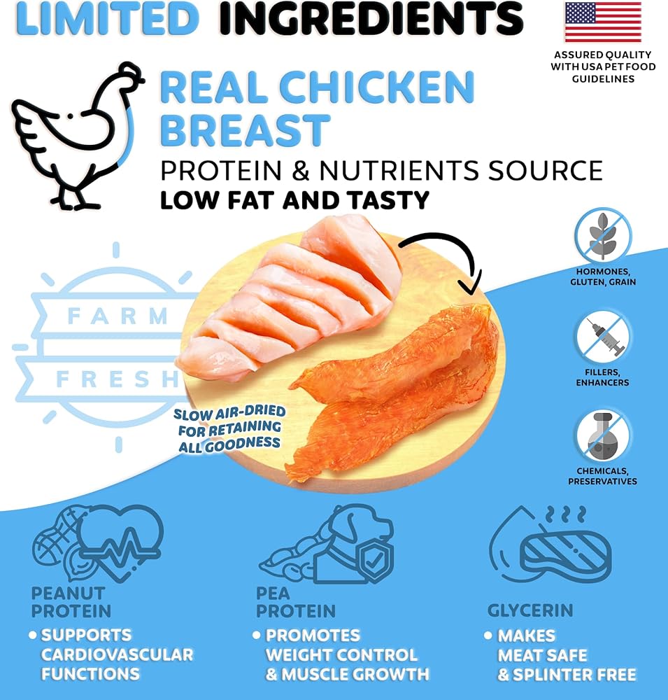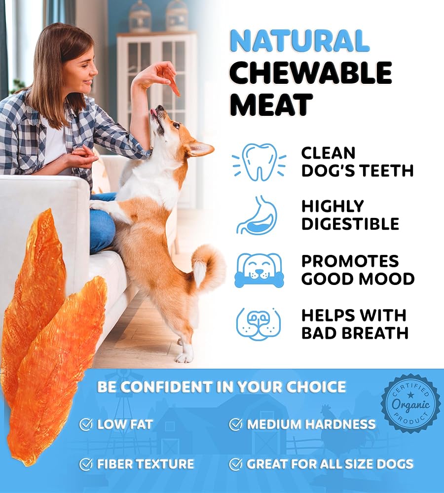 🍗 GRAIN-FREE CANINE CHEWS: Our Chicken Jerky Treats are free from grain. They are designed to be digested easily, making them an excellent choice for dogs with sensitive stomachs or dietary restrictions