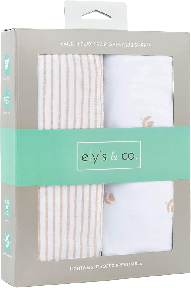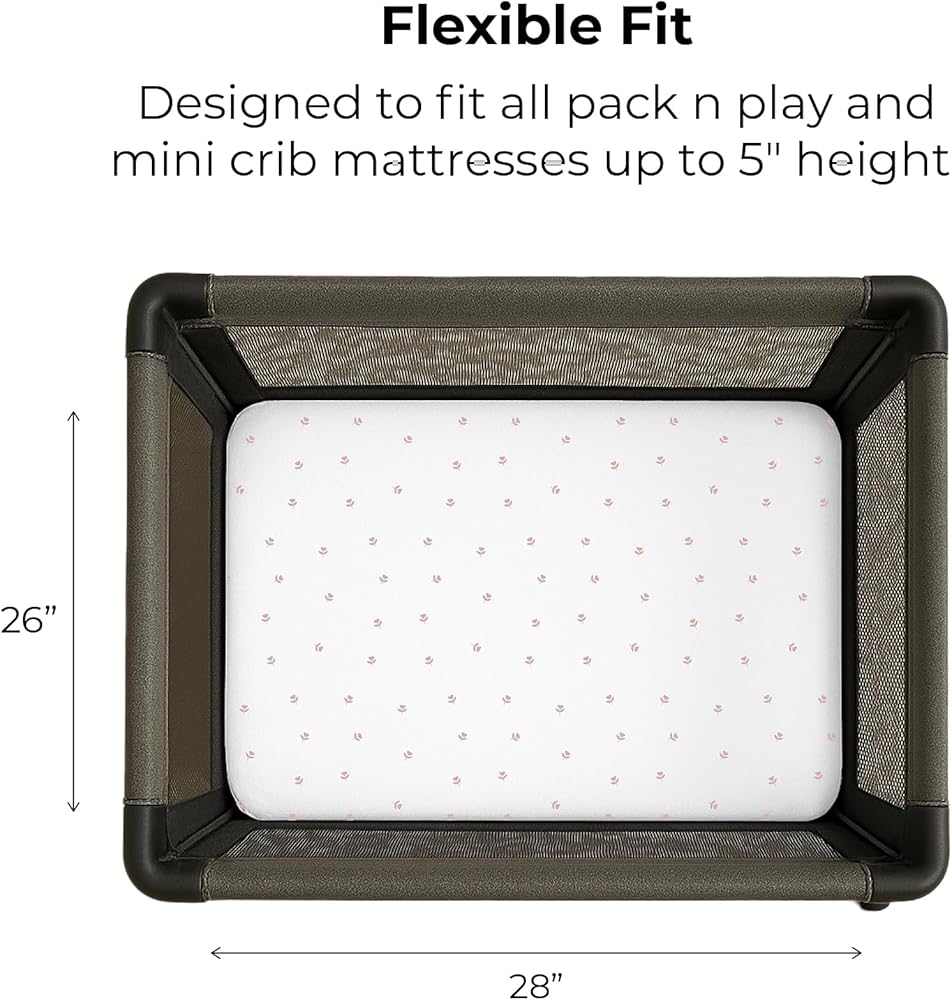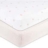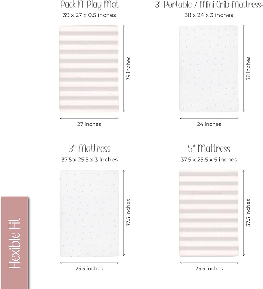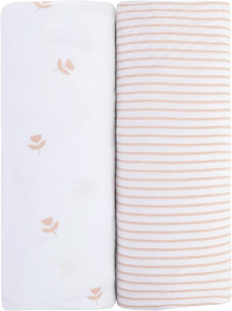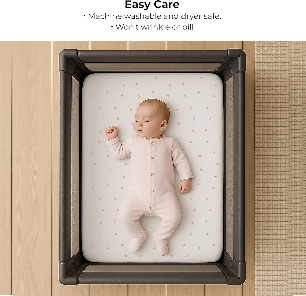 Ely’s & Co. Pack and Play Sheets, for Mini/Portable Crib, 2 Pack Fitted Playpen Play Yard Sheet Set Compatible with Graco Pack n Play, for Baby Girls, 100% Cotton, Pink Tulips and Stripes, 38"x24"x5"