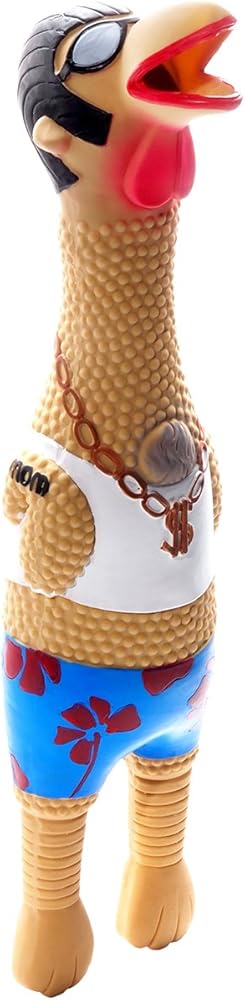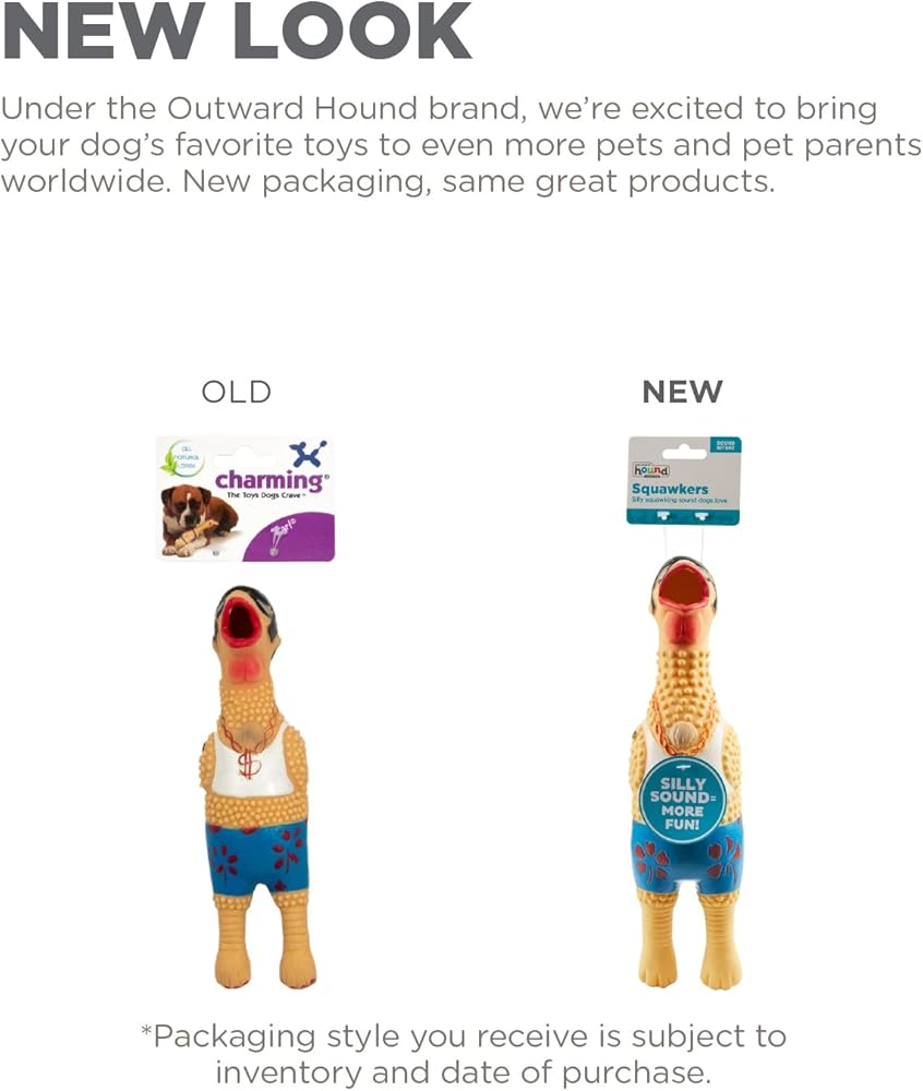Charming Pet Squawkers Latex Rubber Chickens are a favorite amongst pet owners and pups alike. Made from natural latex rubber and lead-free paint these hilarious dog toys are perfect for playing fetch and other games with your dog! The irresistible squawking squeaker will keep them engaged and mentally stimulated as they chomp and play. Choose from this funny flock of original Squawkers characters or gift a holiday edition dog toy to a beloved furry friend! Available in sizes small and large for all dog breeds. SAFETY AND CARE: When choosing a toy, make sure to choose an appropriate size toy for your dog. No toy is indestructible. ALWAYS supervise your dog when using a toy of any kind. Inspect toys regularly for damage and remove and replace if broken, or if parts become separated, as serious injury may result. Intended for dogs only. Keep out of reach of children.