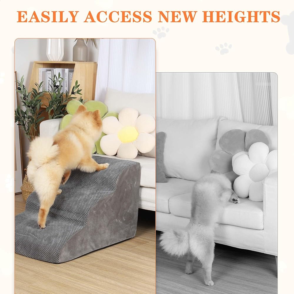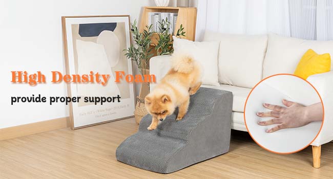 【EASY ASSEMBLY】No complex assembly required here. Our pet steps for small dogs come vacuum-sealed. Simply open the package and let the dog stairs expand naturally for 12-24 hours. Once they've fully rebounded, they're ready for use. Whether your pet needs help reaching the bed or couch, the dog stairs for couch offer a convenient solution.