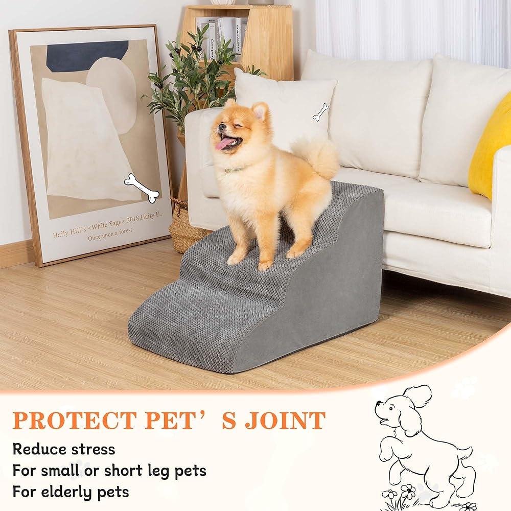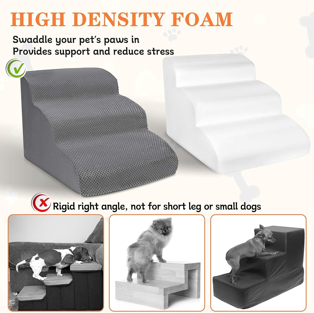 ANWA Dog Stairs for Small Dogs, Anti-Slip Soft Pet Stairs for Injured or Old Dogs or Cats, 3-Tier High Density Foam Pet Steps for Dogs to get on Couch, Low Bed