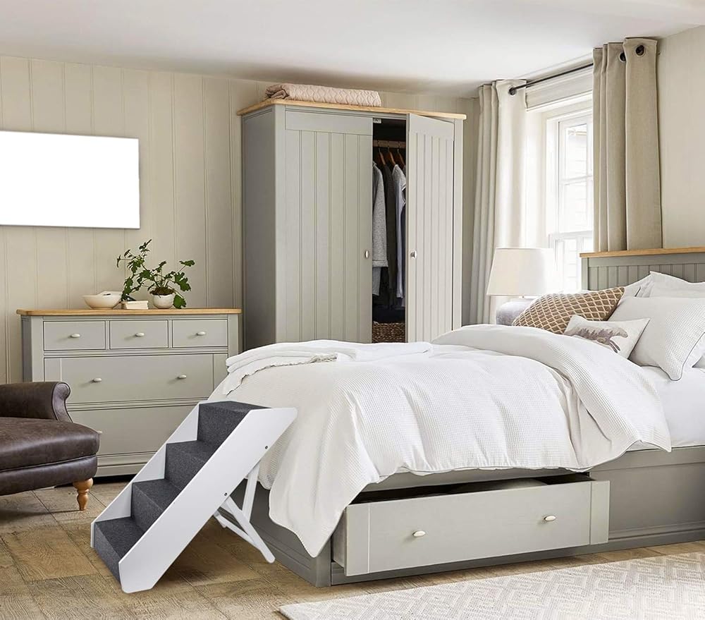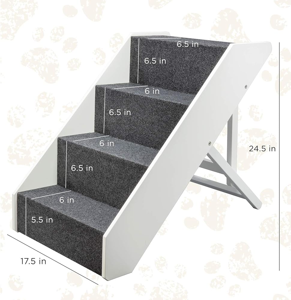 ارف بيتس توفر السلالم الخشبية للكلاب بديلاً جميلاً ومريحًا لمساعدة الحيوانات الأليفة على الوصول إلى أماكنها المفضلة. هيكل قوي ولمسة نهائية غنية من الاسبريسو يعني أنه يمكن عرض هذه السلالم بفخر في أي منزل. إذا لزم الأمر، يمكن طي هذه السلالم بشكل مسطح للتخزين أو النقل المريح. قضبان جانبية آمنة مدمجة في التصميم حتى يتمكن حيوانك الأليف من التسلق لأعلى وأسفل بثقة. لا يحتاج إلى تجميع. الأبعاد: 5 مستويات لتعديل الارتفاع، قياس من 21.5 انش إلى 25.5 انش ارتفاع، عرض كل خطوة 17 انش، كل خطوة ارتفاع 6 انش وعمق 6 انش لاستخدام الحيوانات الأليفة فقط - لا تستخدم بشر.