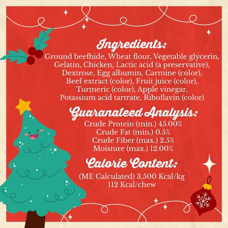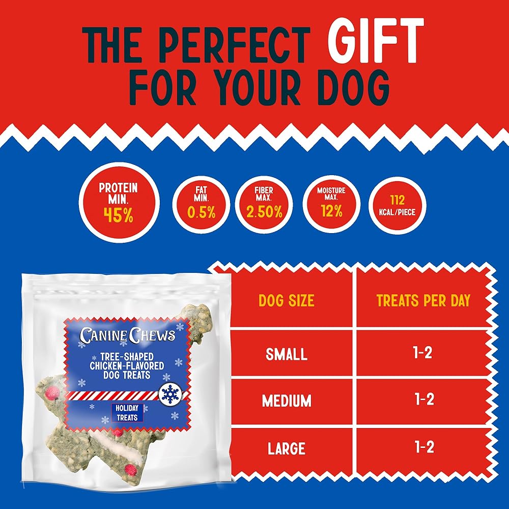 Canine Chews Tree-Shaped Chicken-Flavored Christmas Dog Treats - One Individually-Wrapped Rawhide Holiday Dog Treats - Christmas Dog Cookies for Any Dog Size or Breed