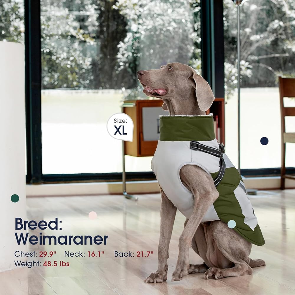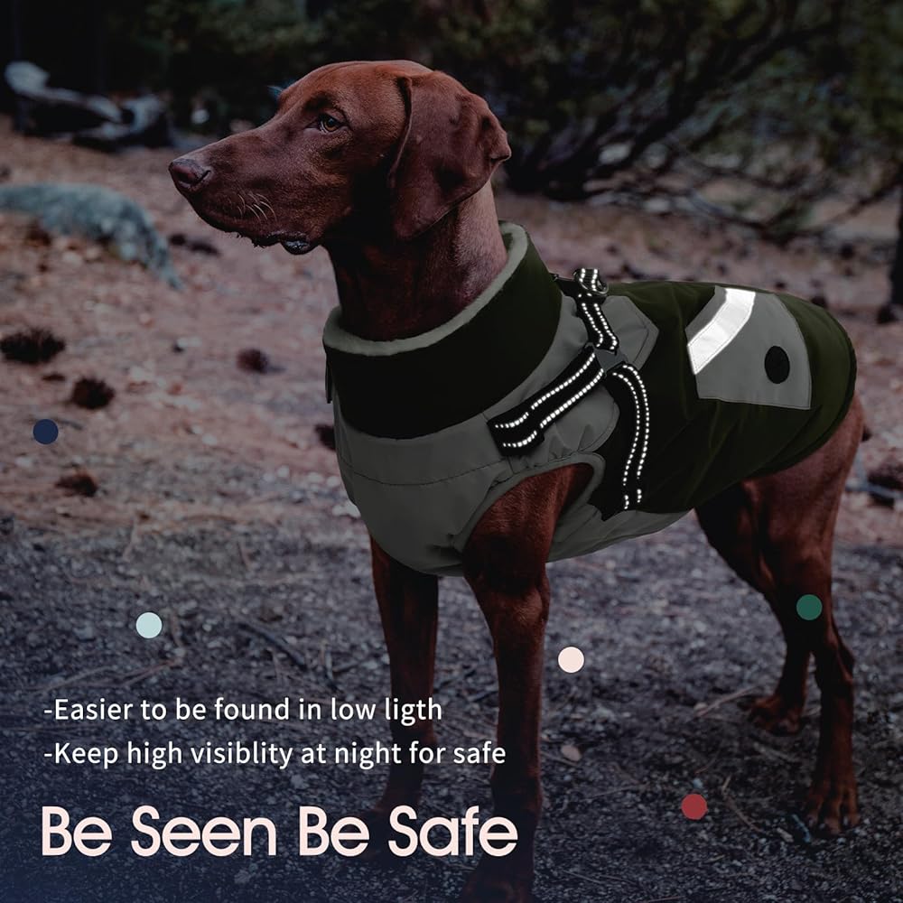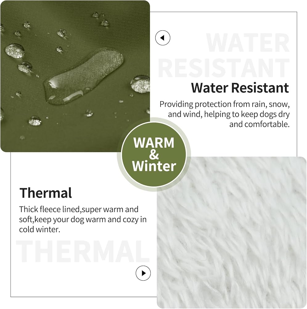 Waterproof&Warm Dog Fleece Jacket:The thick, insulating polar fleece lining and turtleneck collar envelops your dog in comfort and warmth during the cold weather. Outer of the large dog coat is made with premium polyester fabric, windproof waterproof and snowproof, helps pup stay dry and clean from rain or snow.