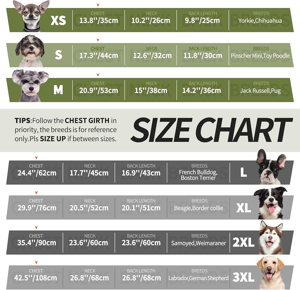 For All Breeds Dog Snow Jacket:IECOii dog snow coat 7 sizes ranging from XS to 3XL suit for small medium large xl breeds dogs like Teddy,Poodle, Chihuahua, Bichon, Shih Tzu, Jack Russell, Scottie, Schnauzer, Pug, Boston Terrier, Beagle, Corgi, Dachshund,French Bulldog,pitbull,German Shepherd,Husky,Greyhound,Labrador, Golden Retriever, Doberman,Great Dane,etc.NOTE:Please measure your dog around widest part of the chest and lower neck, then refer to size chart.