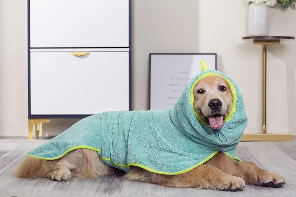 【SUPER ABSORBANT, LIGHTWEIGHT, and QUICK DRYING】 It's time to say goodbye to bulky bath towels that your dog can skip out of. Wet dogs no longer freeze/shiver after winter walks or after bath time. This coat fits snugly on your dog, allowing the fabric to contact the fur directly and ensuring that moisture is quickly absorbed.