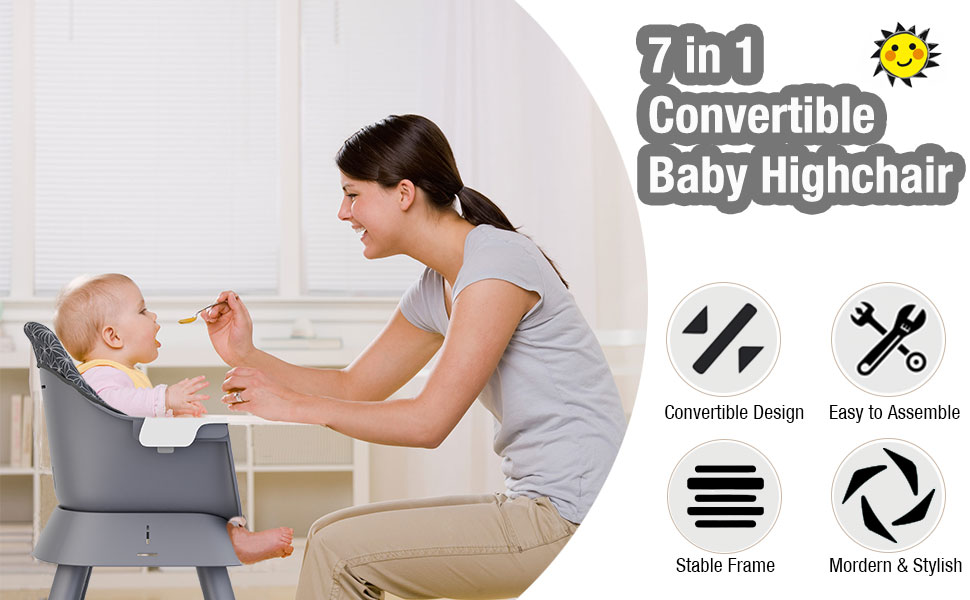 👉【 Versatile 7-in-1 Highchairs 】 Accombe baby high chair is designed to meet the changing needs of your growing child. It can be a 1) traditional high chair with a tray and a comfortable padded seat. 2) Or lower it to be an ideal eating chair for young toddlers who need extra support while sitting and eating at a picnic. 3) Also, can convert it into an infant feeding booster seat that can be placed on an adult chair to allow the baby to sit at the table, or used as an infant floor seat alone.