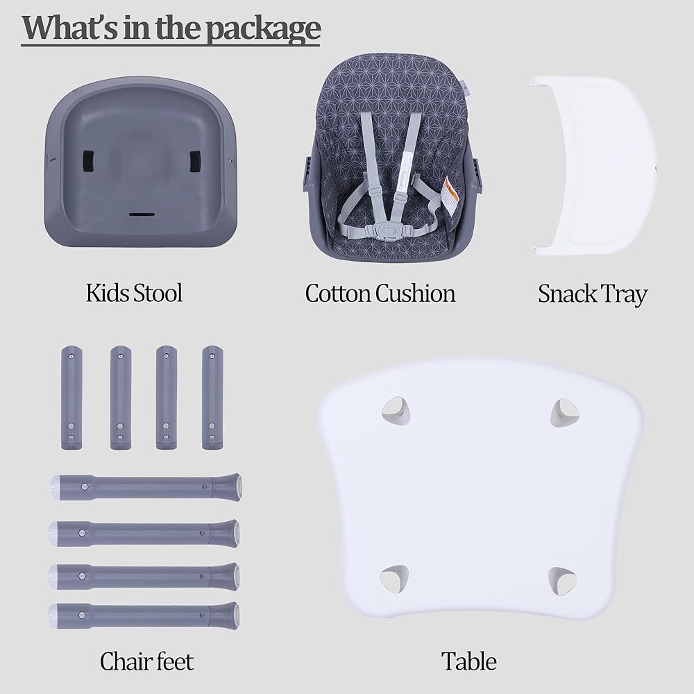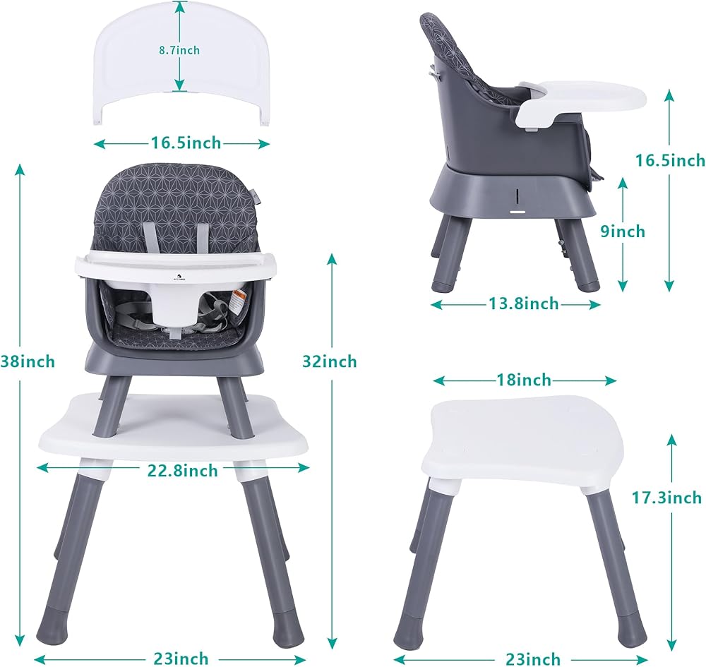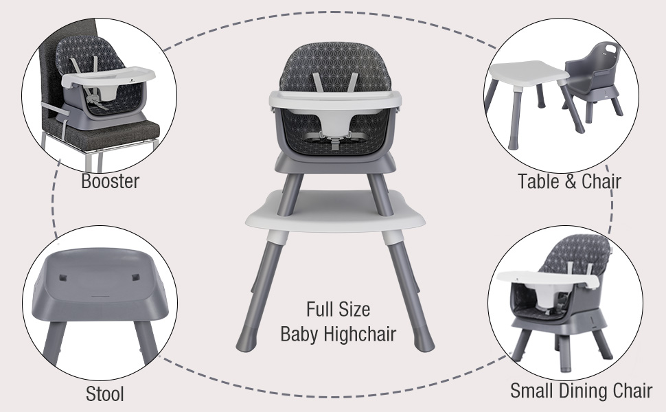 🎉 4) When your child is ready, the tray can be removed, and the lower baby highchair can be changed into a youth chair for child to siting or moving, 5) later on, toddler chair converted to a kid stool namely a preschool chair. 6) Combine the chair with table, it is perfect for playing and studying when your child do homework at home , 7) Finally, remove the tray and backrest, it can be used as a stylish bar stool for toddler children. Recommend for 6-36 months and max weight capacity 55 lbs.