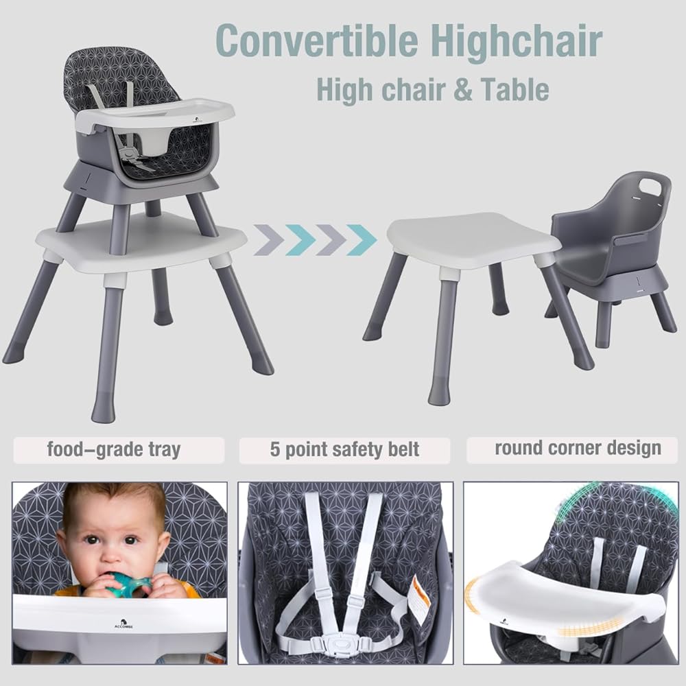 Accombe High Chair 7 in 1 Baby High Chairs for Babies and Toddlers Booster Seat for Dining Table, Convertible Baby Eating Chair Adjustable Plastic Highchairs for Baby Boy Girl, Sit up Floor Chair