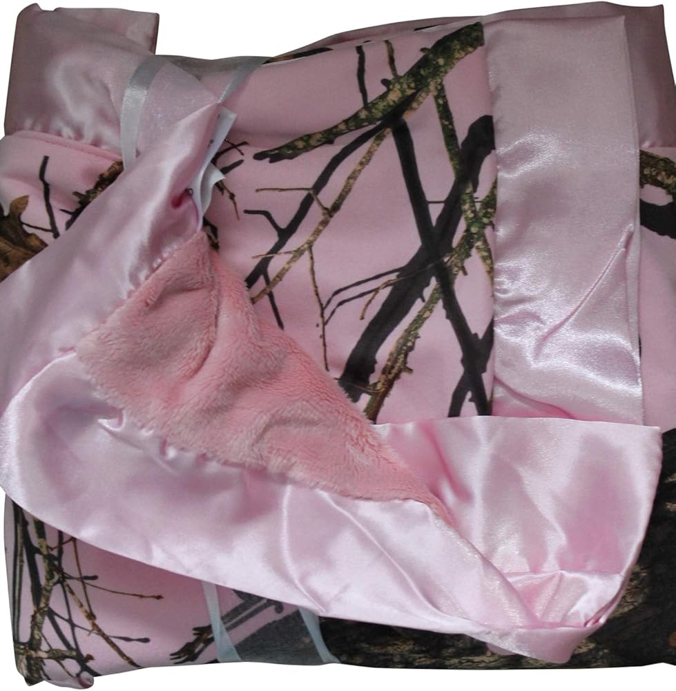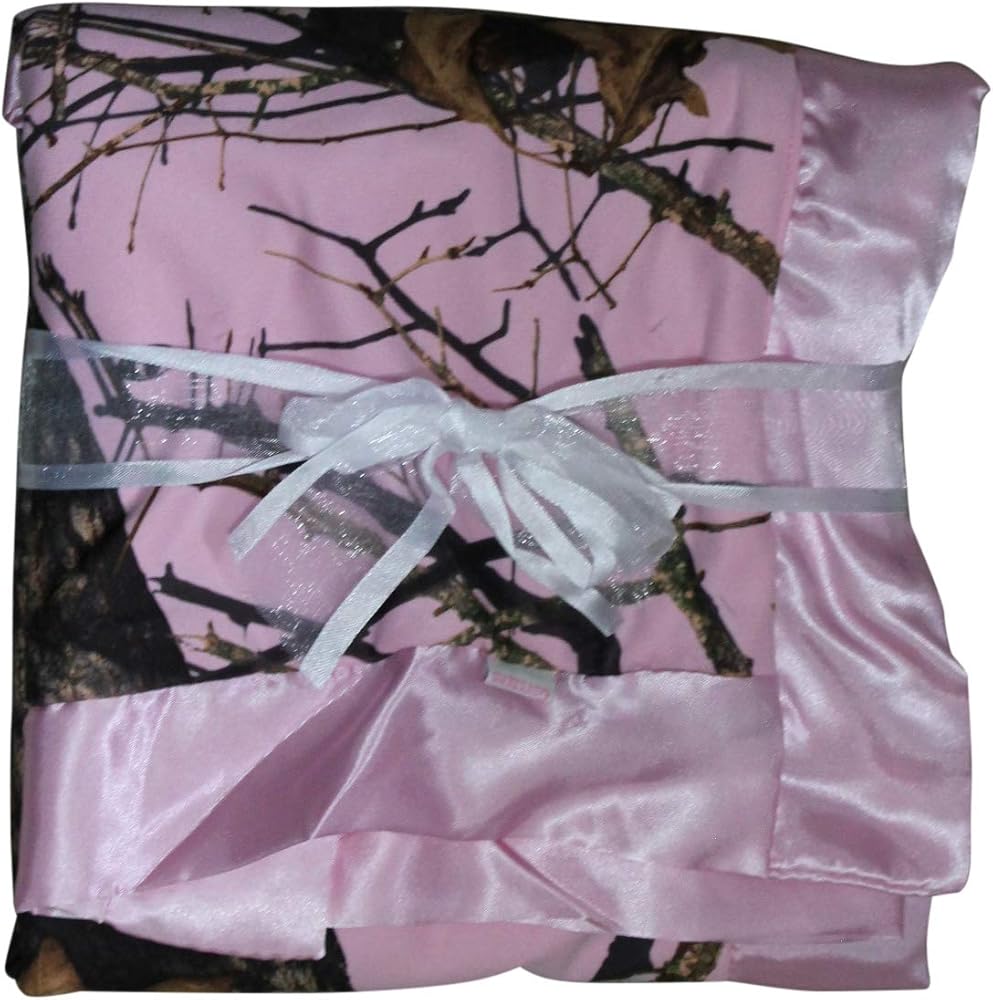 Now you can bring HER home in camo, wrapped in our super soft Mossy Oak Break Up Pink Camo baby blanket! Blanket measures 34x34 inches. Polyester microfiber Mossy Oak Pink camo with microfur plush back and pink satin trim. Machine wash cold, tumble dry low heat, spot clean before laundering