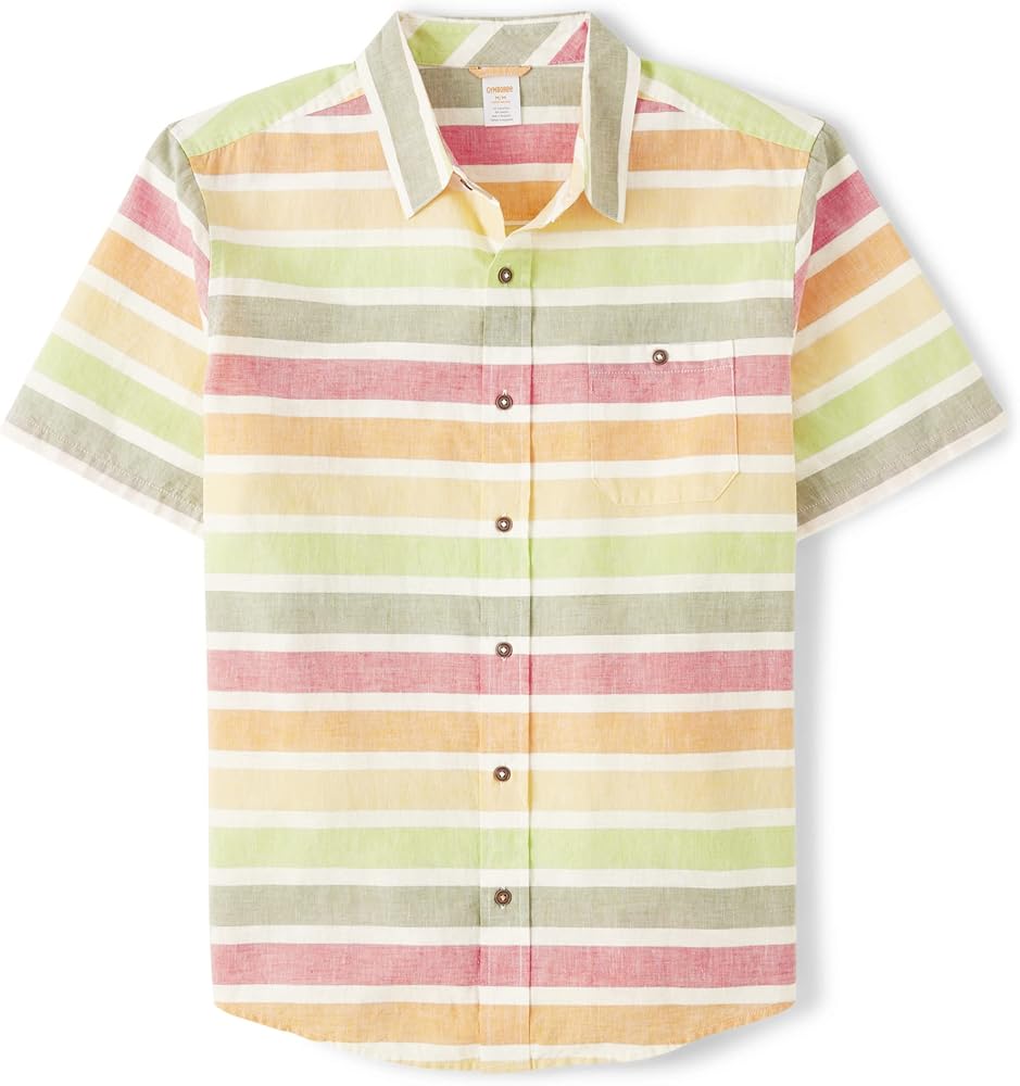 FEATURES — 100% cotton poplin, button front, chest pocket with button-and-loop closure and short sleeves
