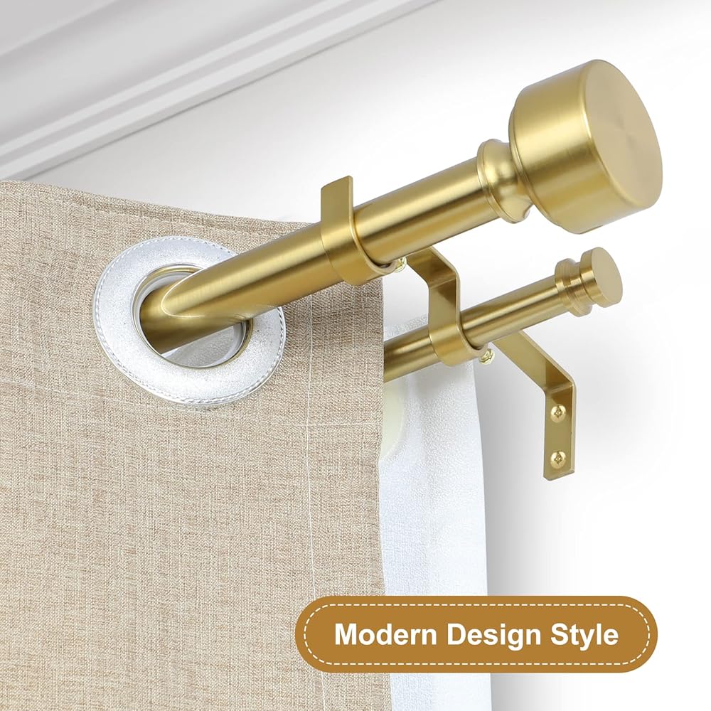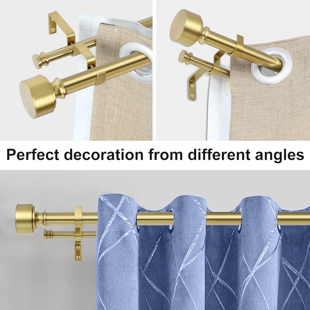 قضبان ستائر مزدوجة ذهبية للنوافذ من 36 إلى 72 بوصة (3-6 أقدام)، قضيب ستارة مزدوج قابل للتعديل مع غطاء نهاية معدني، مجموعة قضبان ستائر مزدوجة شديدة التحمل بقطر 1 بوصة 36-72 بوصة، ذهبي