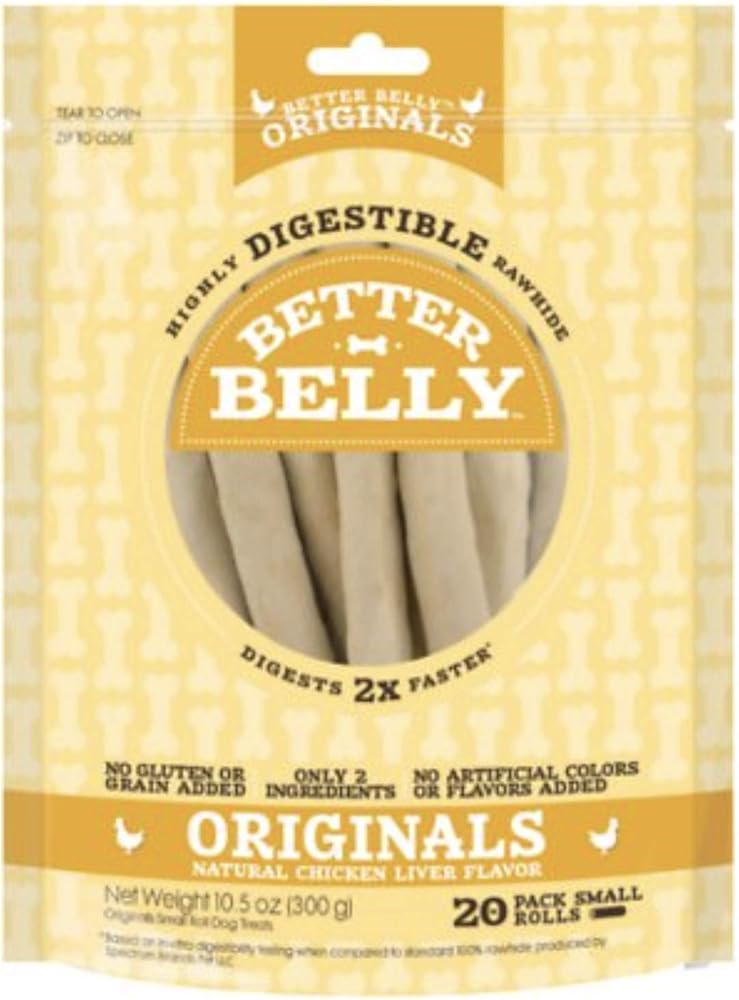 Highly digestible rawhide chews Specially processed for 2X faster digestion than traditional rawhide Made with premium rawhide and natural chicken liver flavoring No fillers, binders, or artificial colors Approximately 5"-6" long This is an offering for multi quantity bundle - 2 count