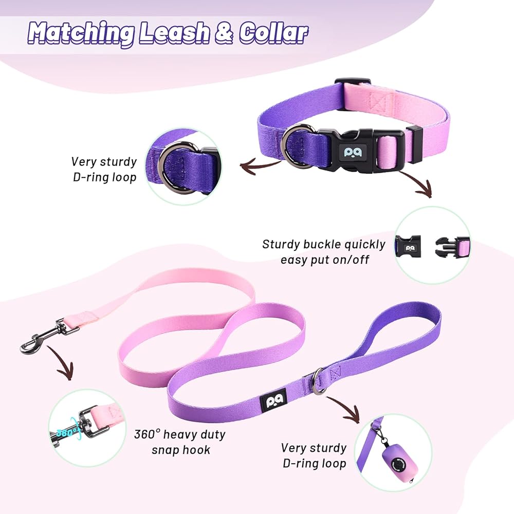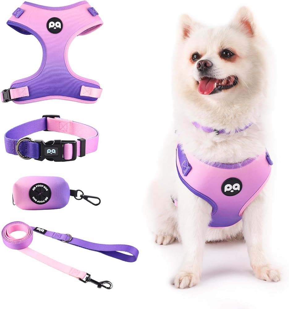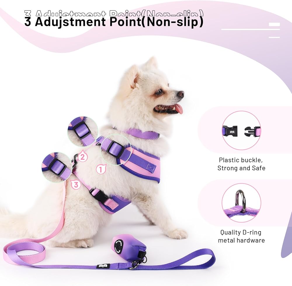 4 in 1 Dog Harness Set: This combo includes--1 vest harness+1 matching basic collar+ Easy Control 5ft leash, and 1 cute poop bag holder. can meet various needs, creates an eye-catching, stylish look for your pup, keeping him safe and secure. This set is the perfect for hiking in the woods, running around the park, or walks around the neighborhood.