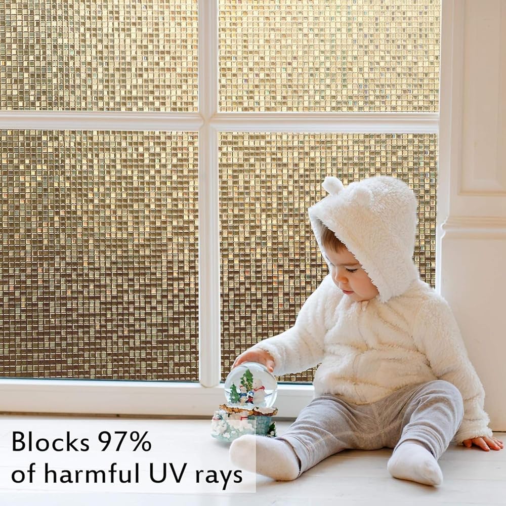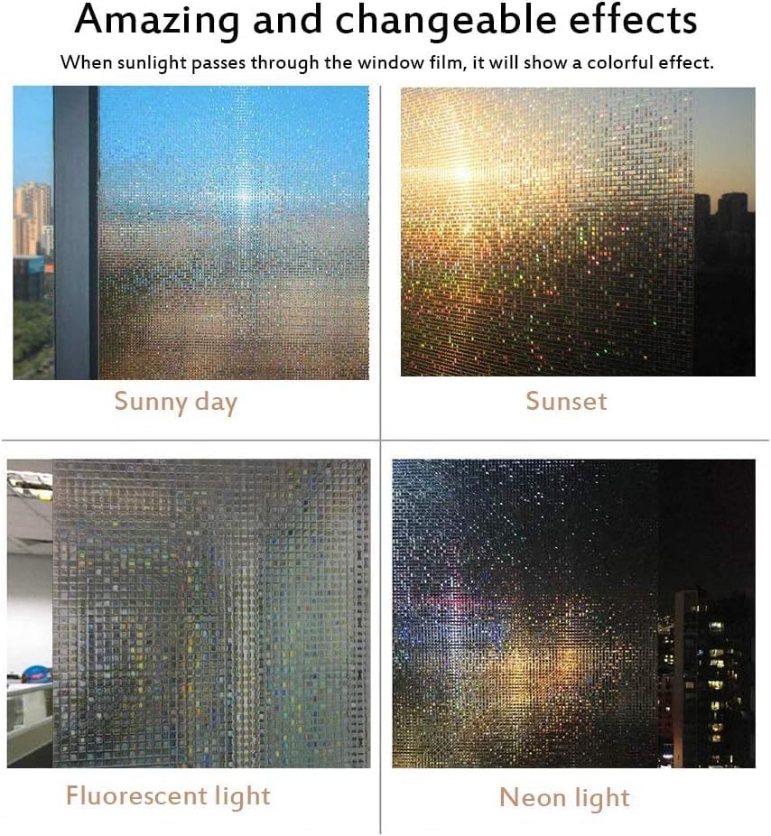 Crystal Mosaic Privacy Window Tint has Magic 3D rainbow effects, Provides Good Privacy, Protects Skin And Eyes, And Prevents Furniture From Fading And Aging By Blocking Out More Than 97% Harmful Rays And Filtering Strong Light. While Show You A Comfortable And Decorative Home Where Has no Disturbance From Dazzling Strong Light And UV Rays When You Are Enjoying The Natural Sunshine! High-performance Vinyl + Super static cling, lasting from 3 to 5 years.