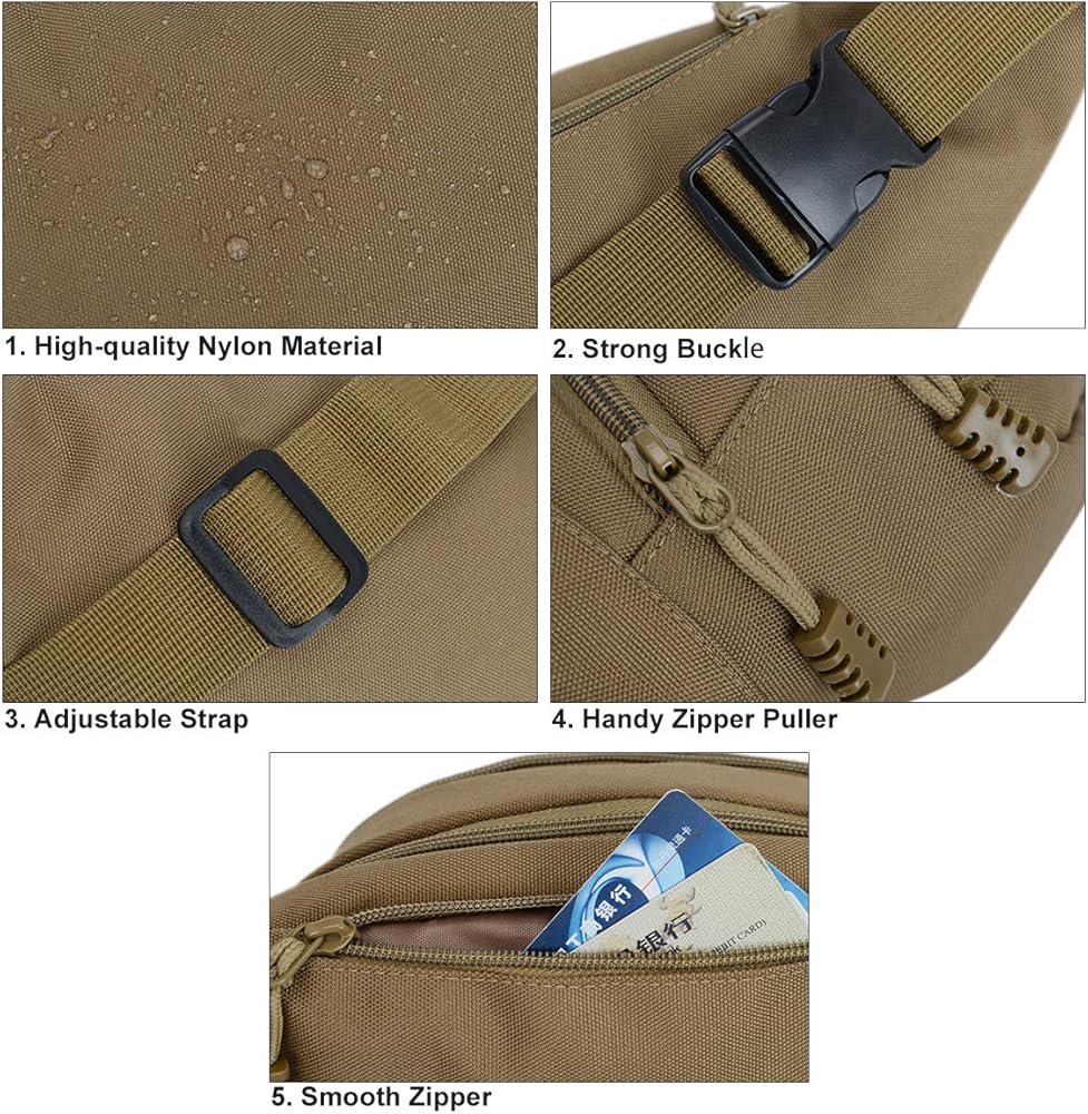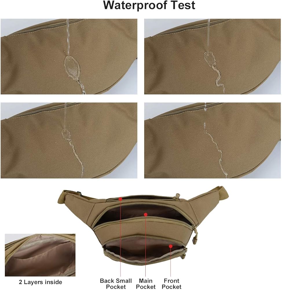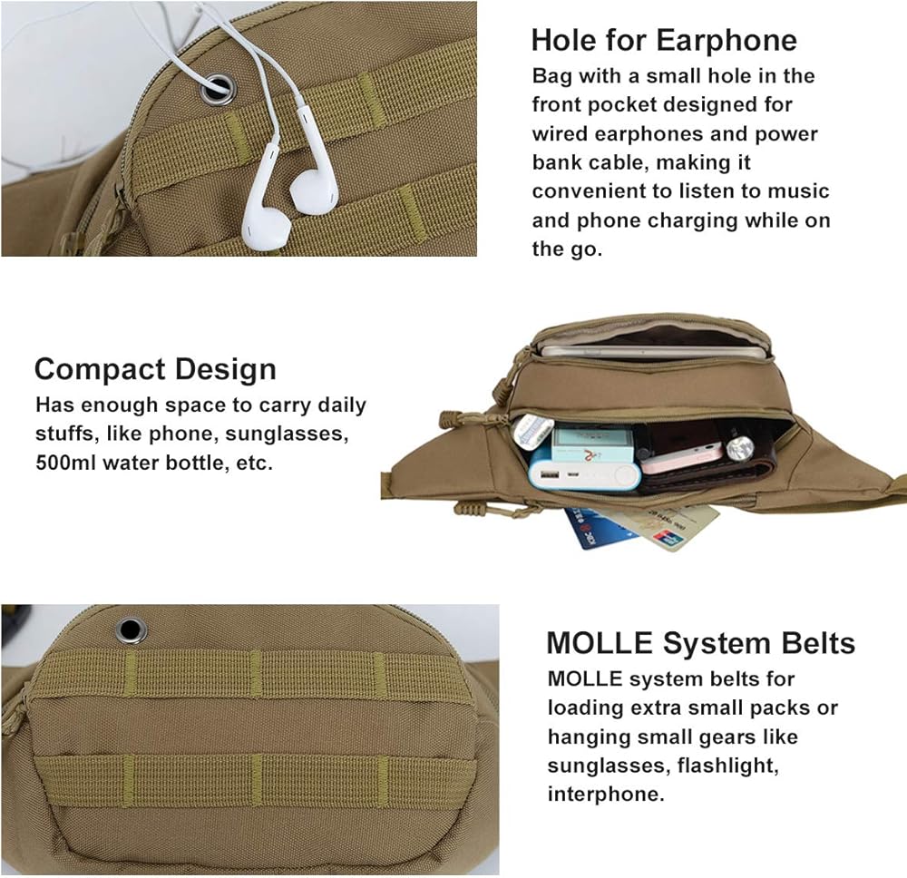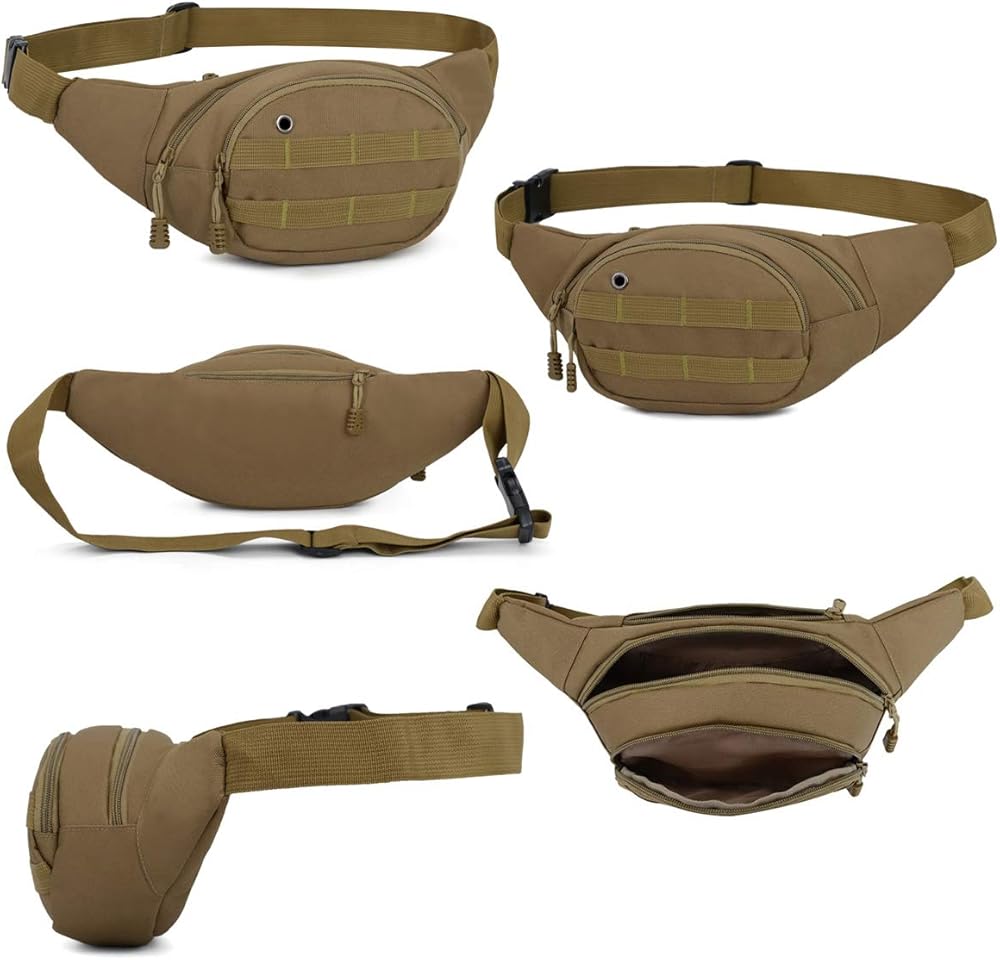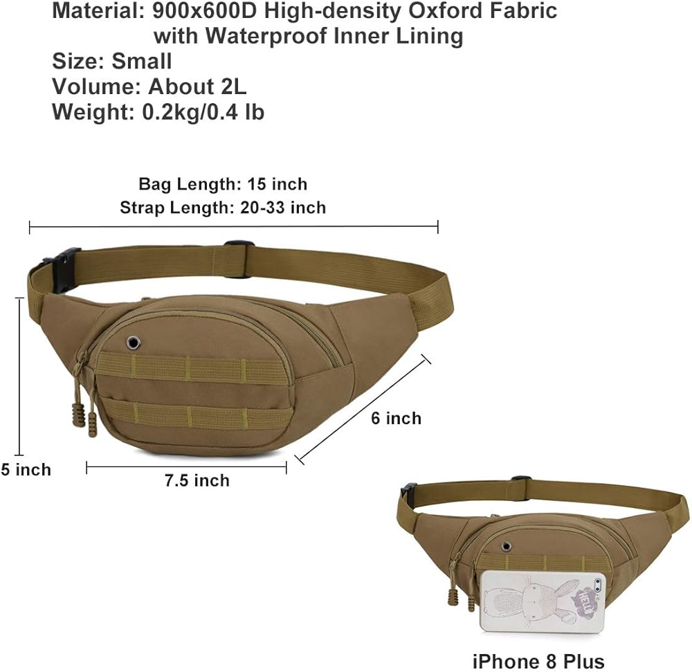 Tactical Fanny Pack - BraveHawk OUTDOORS Portable EDC Fanny pack has 3 pockets and adjustable strap. The main pocket can hold a 500ml water bottle, and the front pocket fits well with 6.8" phone. The back pocket is good for storing cash, keys, cards and other important objects. 2L volume space and size: 15 x 5 x 3.5 inch. meet your most of daily storing needs.
