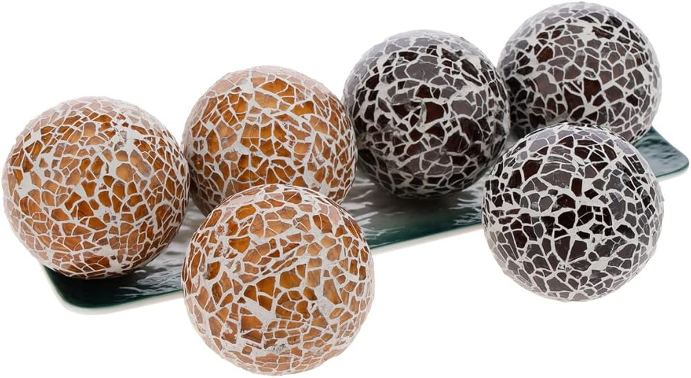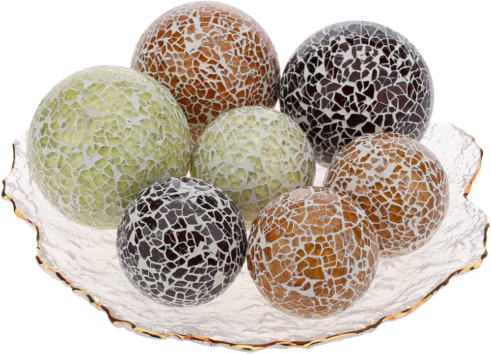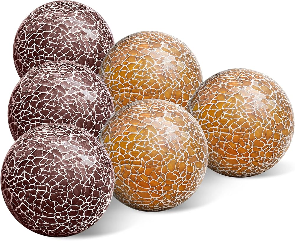 Quantity and sizes:This product includes 3 brown Mosaic Sphere Balls Glass Decorative Orbs, each Glass Decorative Orbs 3.35inch, its glass finish can add a touch of color to your table Living Room Festival Party, durable and does not take up space.