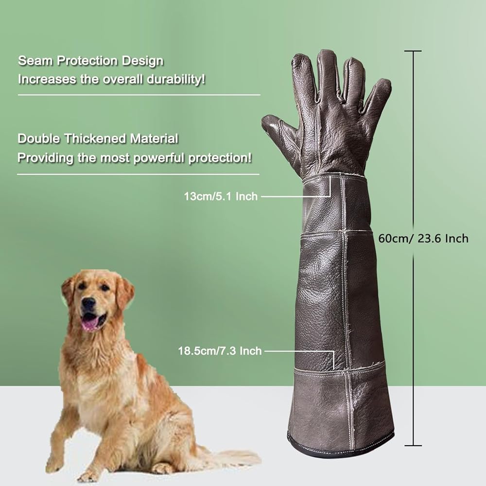 EXCELLENT BITE PROOF - Length: 60cm/ 23.6 inches, palm width: 13cm/5.1 inches, sleeve width: 20cm/7.8 inches. The palms and back are reinforced tailoring, forming a compact solid covering, and provide an excellent bite-proof function from the small animal for your hands and forearm.