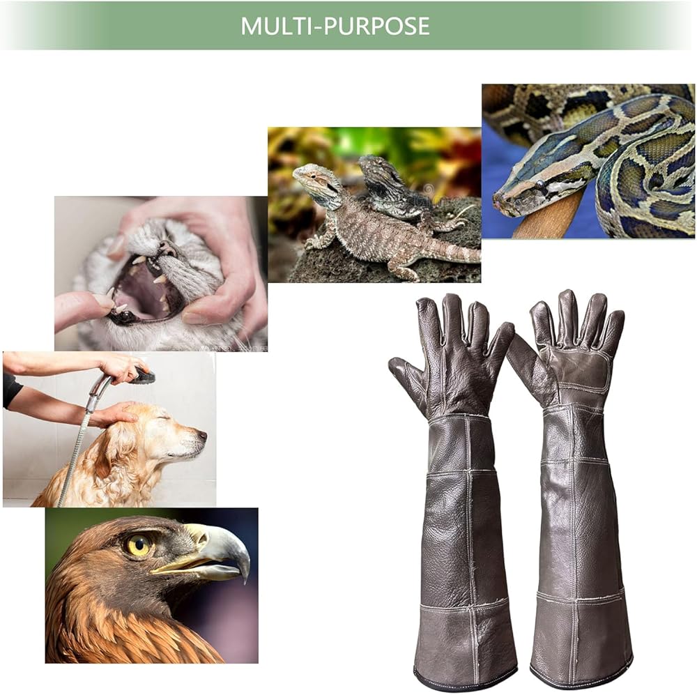 MULTI-PURPOSE - FIPASEN waterproof animal handling gloves can avoid bites or scratches from a cat, dog, rat, rabbit, lizard, snake, turtle, or spider. It could also be used when keeping birds and poultry, and prevent biting while playing with large birds, such as hawks, falcons, parrots, etc.
