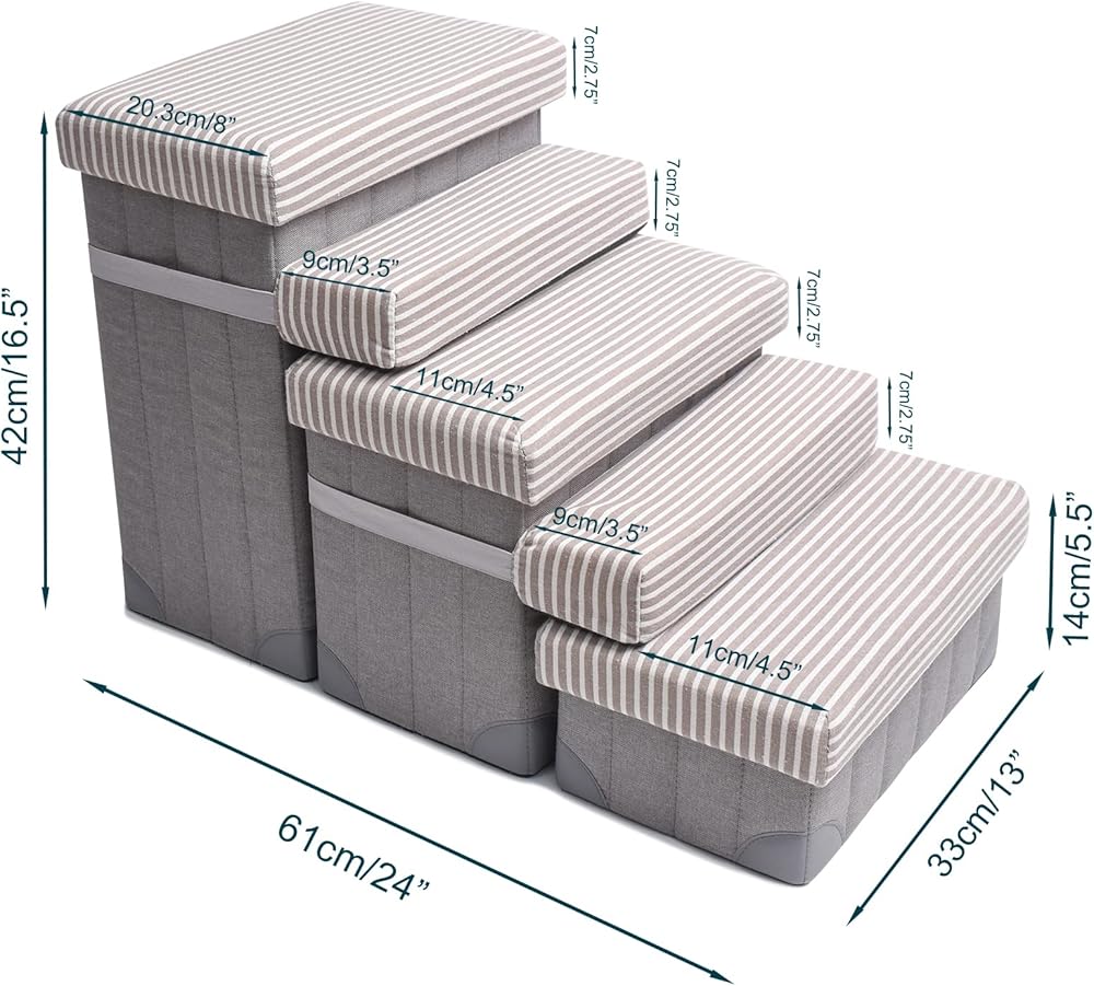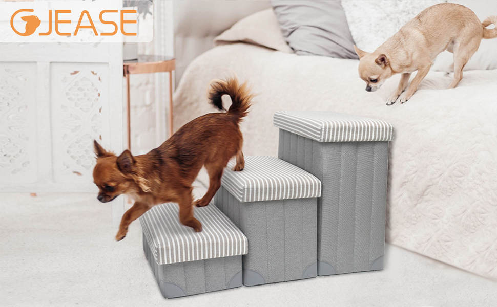[Sturdy and Soft box cover]: GJEASE box cover are pretty sturdy,and filled with sponge. The pet stairs provides a sturdy footing for your pet and relieves pressure on paws. Ideal for all pets even senior, arthritic or recovering dog or cat.