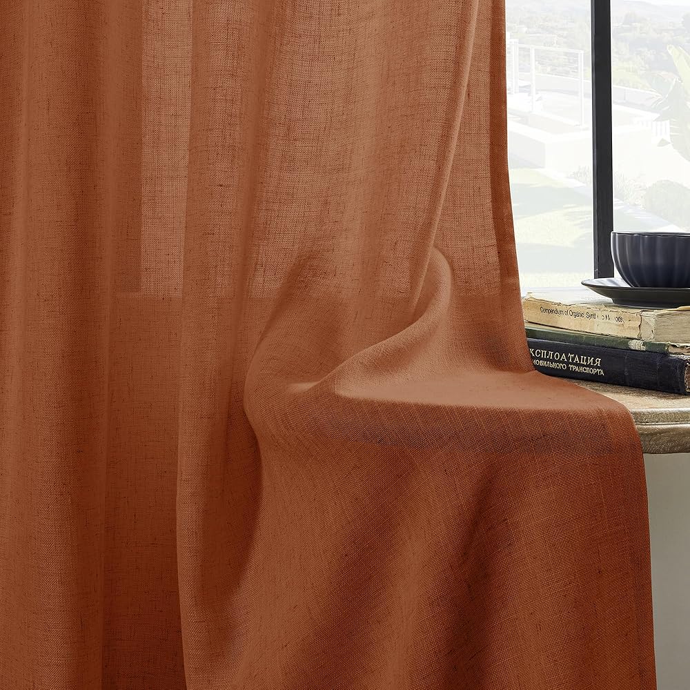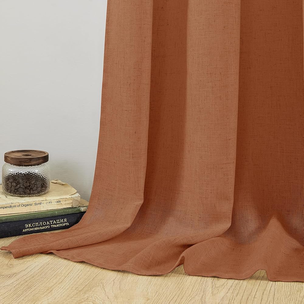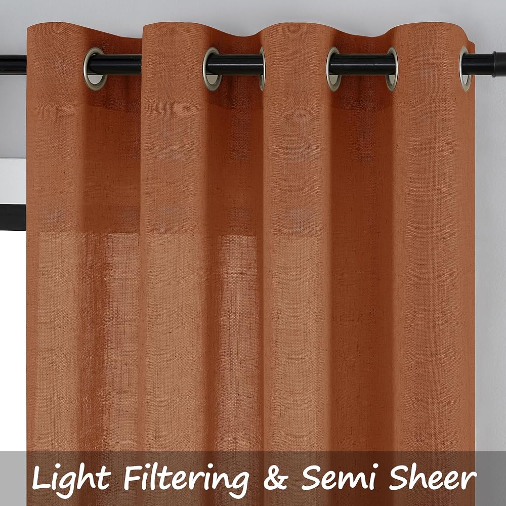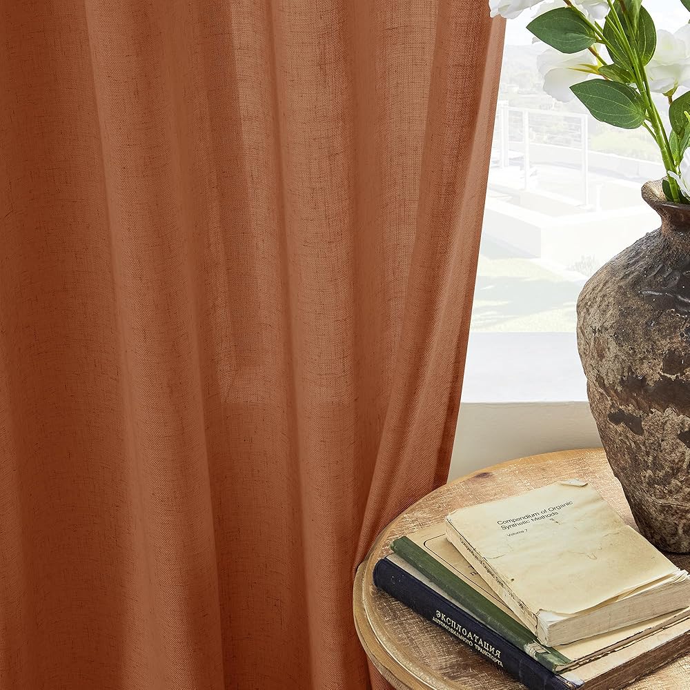 [Semi Sheer Linen Curtains]: Our linen curtains are a type of lightweight, semi transparent window treatment allows natural sunlight to filter through while also providing enough privacy(unlike ordinary sheer curtains). The linen material gives the curtains a natural texture and adds a touch of aesthetic feeling to your home. Available in a variety of sizes and colors, they are sure to elevate your home decor.