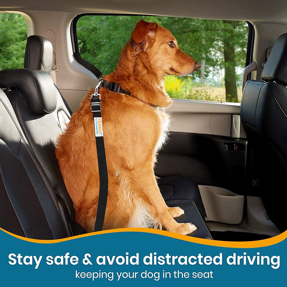 PAWBEE 2-Pack Dog Seat Belts for Cars - Adjustable Nylon Car Harness with Stainless Hooks, Safety Seatbelt Harnesses for Dogs, Durable Dog Car Seat Belt Clip, Essential Travel Accessories for Pets