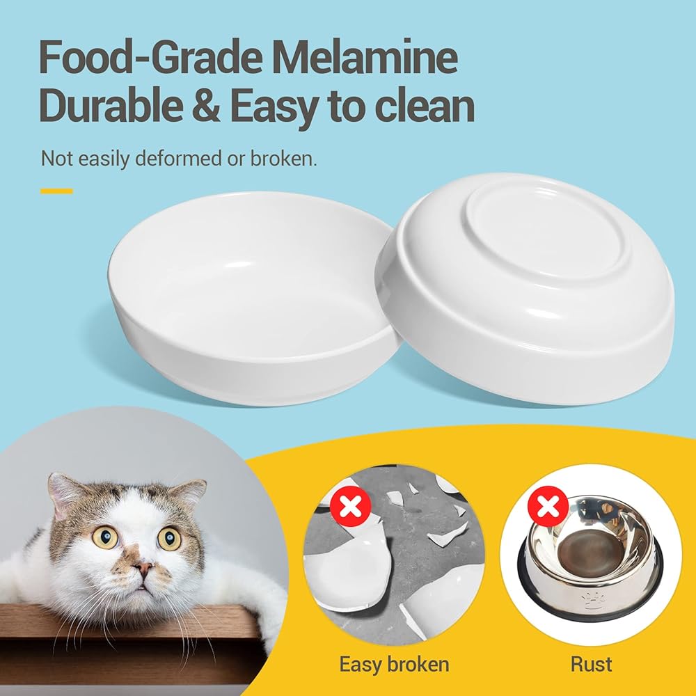 [Whisker Stress-Free] A cat's whiskers are very sensitive. These raised food dishes have a wide mouth and shallow design so that the cat can eat without touching its whiskers or nose, preventing whisker fatigue and keeping the cat's face clean.